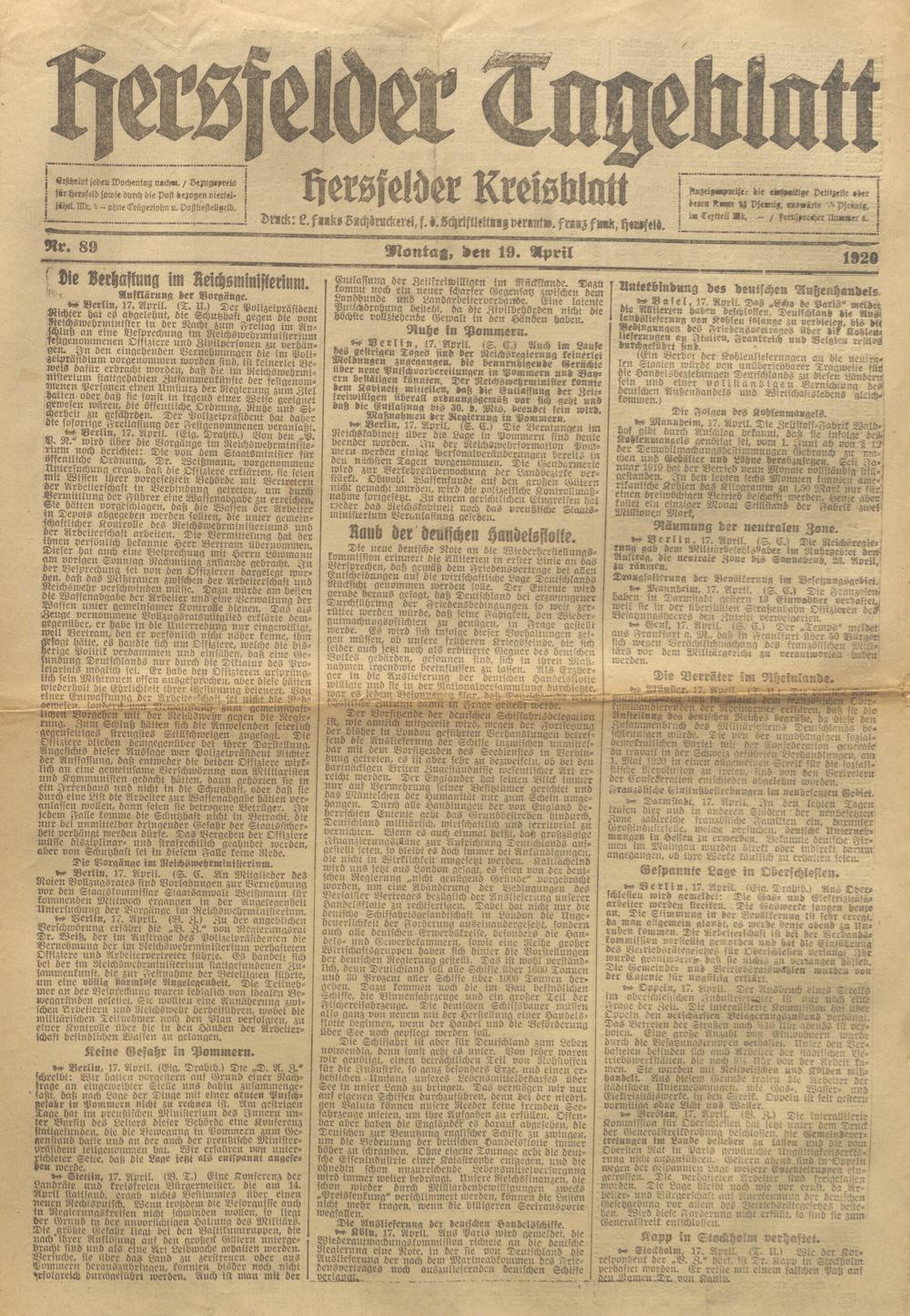 Hersfelder Tageblatt. 1913-1933