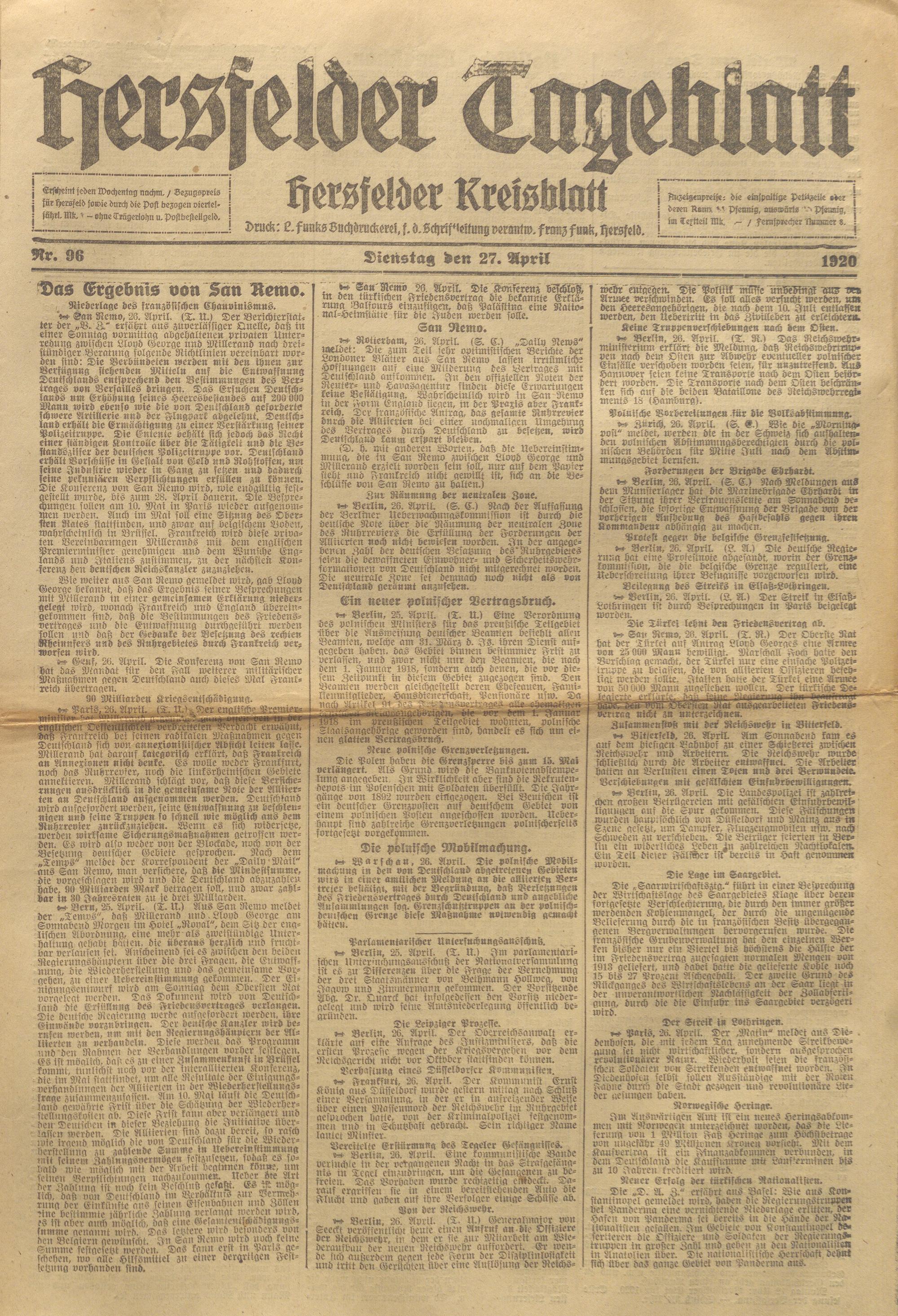 Hersfelder Tageblatt. 1913-1933