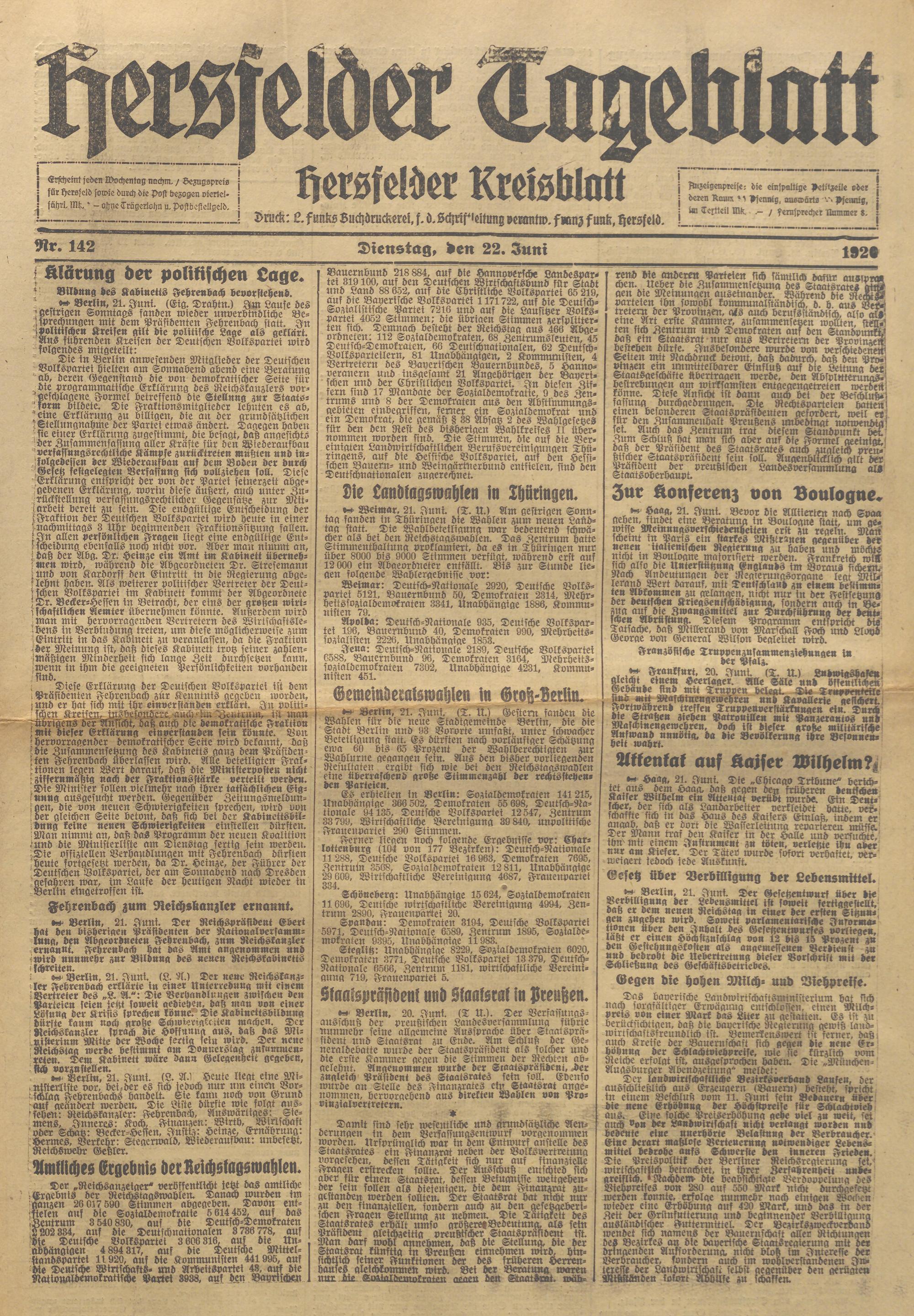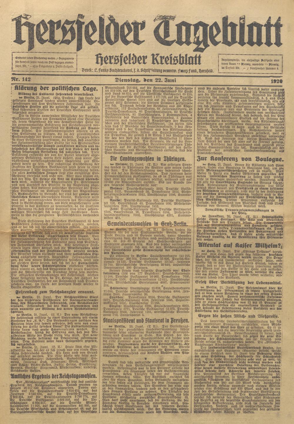 Hersfelder Tageblatt. 1913-1933