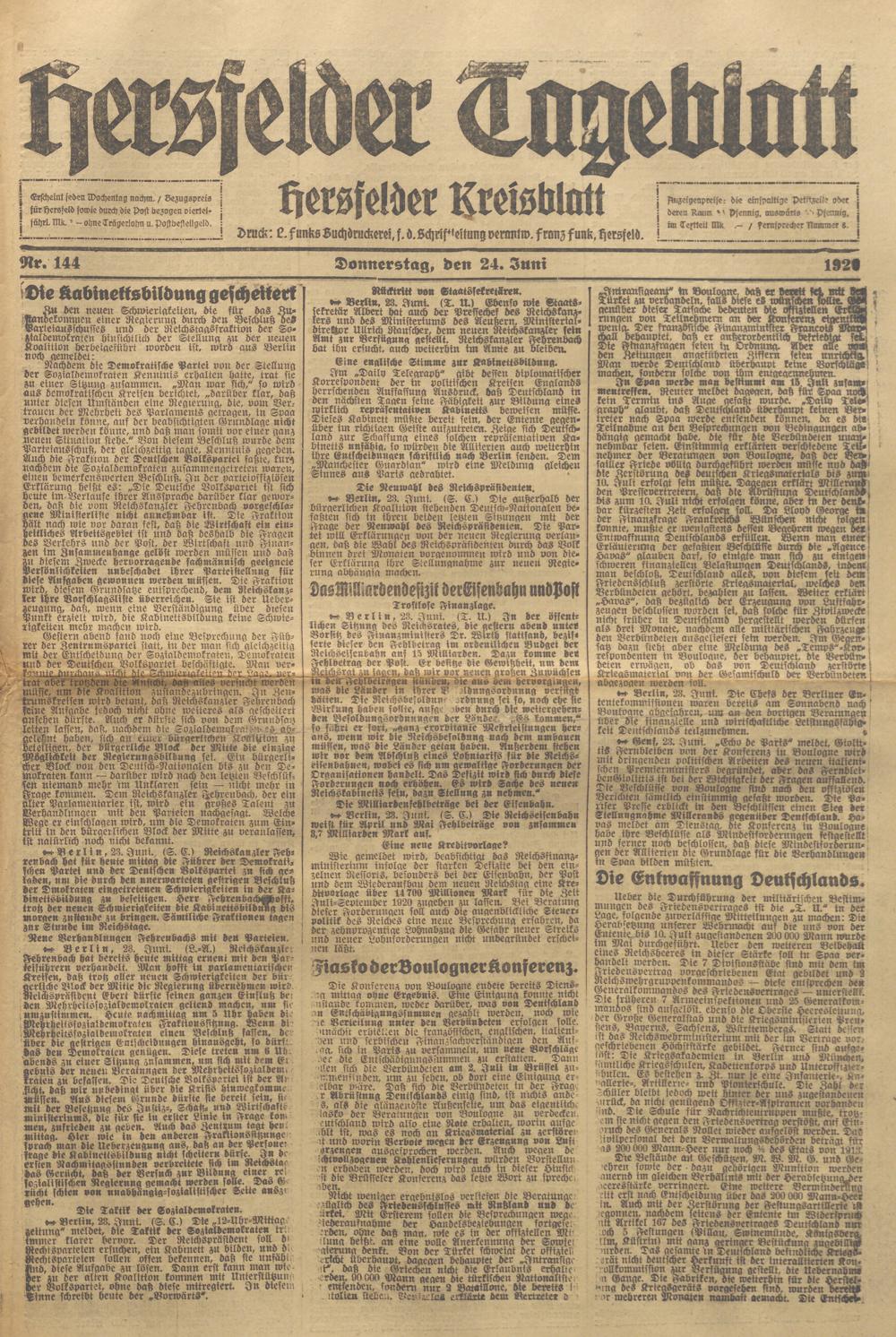 Hersfelder Tageblatt. 1913-1933