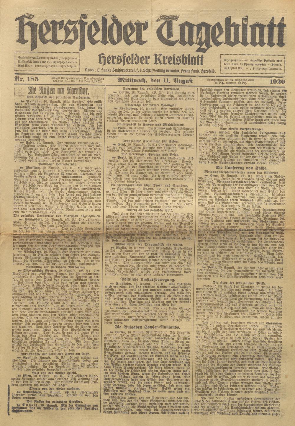 Hersfelder Tageblatt. 1913-1933