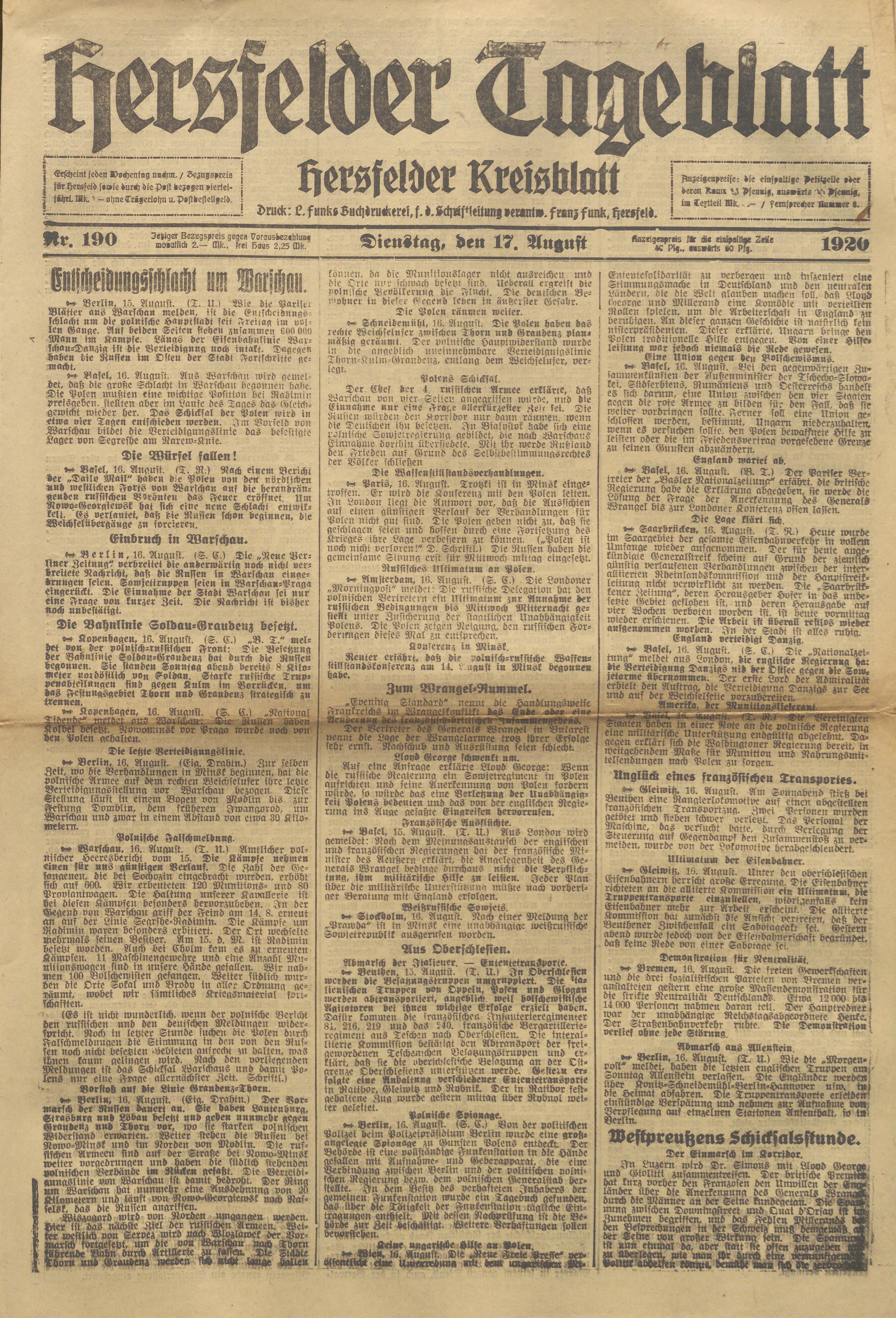 Hersfelder Tageblatt. 1913-1933