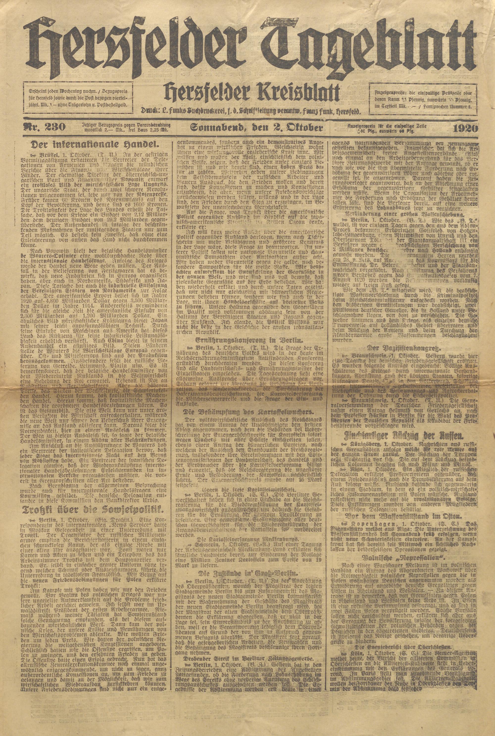 Hersfelder Tageblatt. 1913-1933