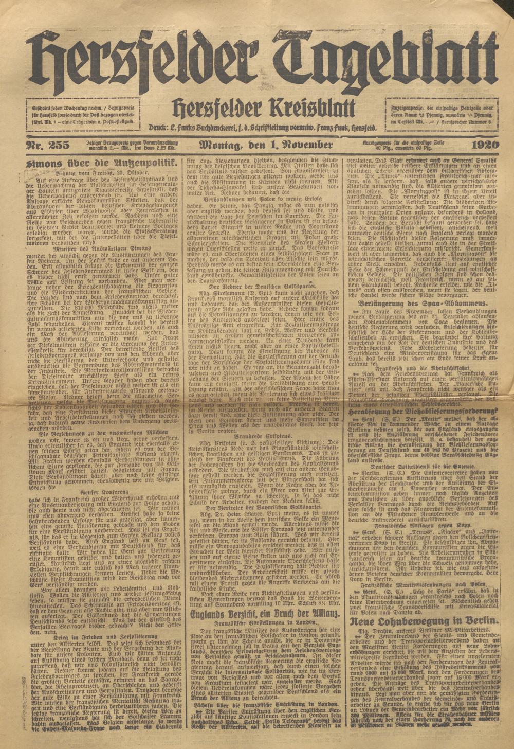 Hersfelder Tageblatt. 1913-1933