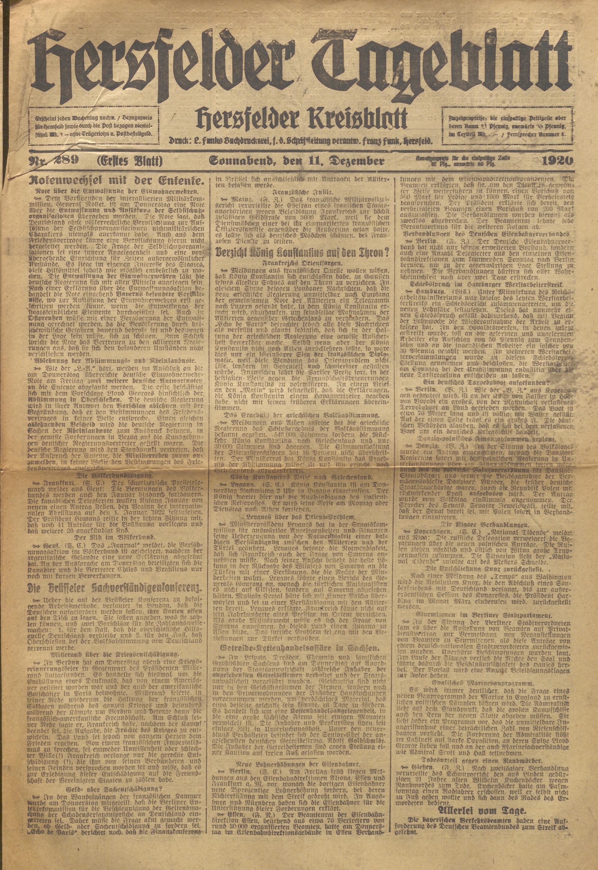 Hersfelder Tageblatt. 1913-1933