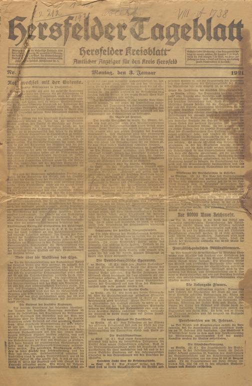 Hersfelder Tageblatt. 1913-1933