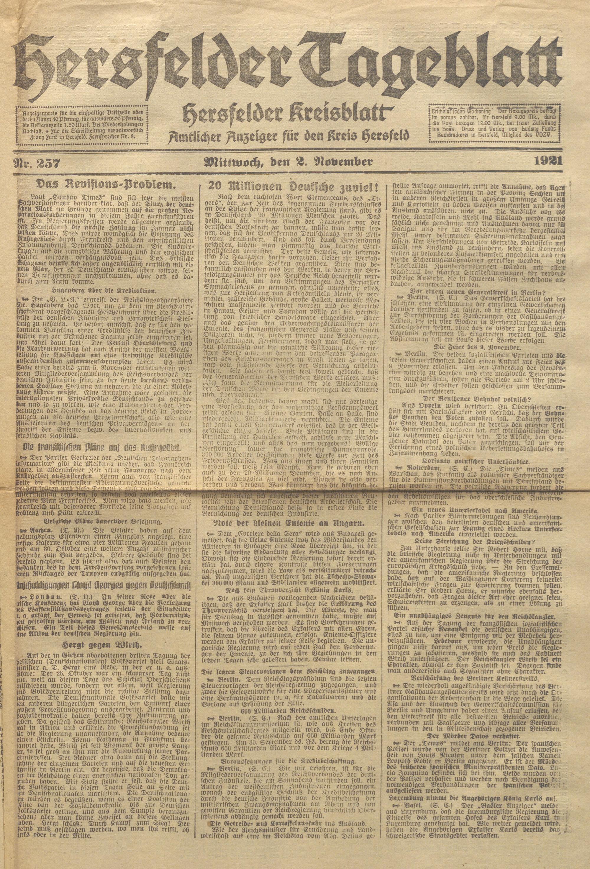 Hersfelder Tageblatt. 1913-1933