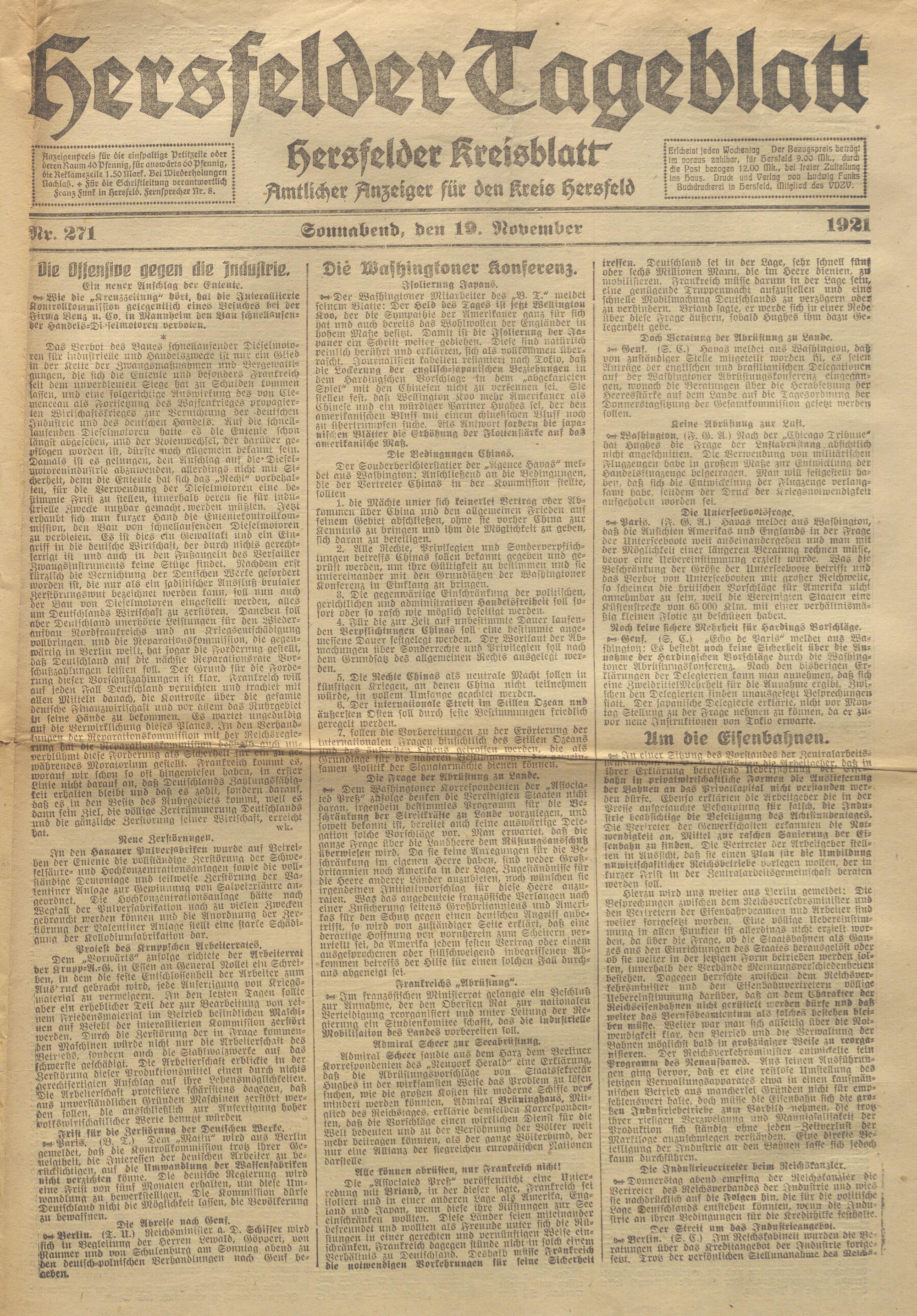 Hersfelder Tageblatt. 1913-1933
