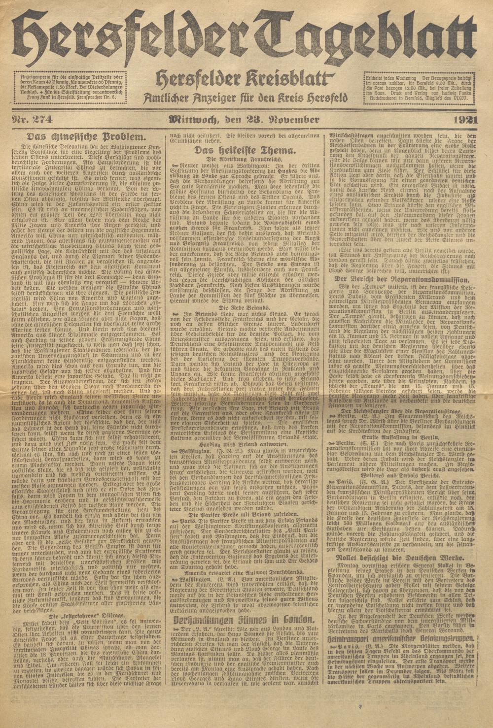 Hersfelder Tageblatt. 1913-1933