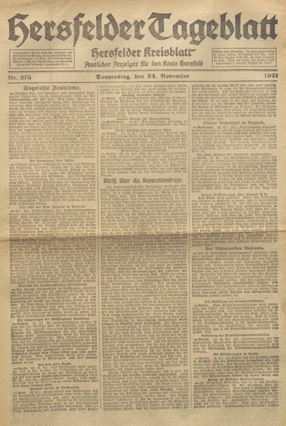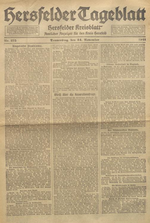 Hersfelder Tageblatt. 1913-1933