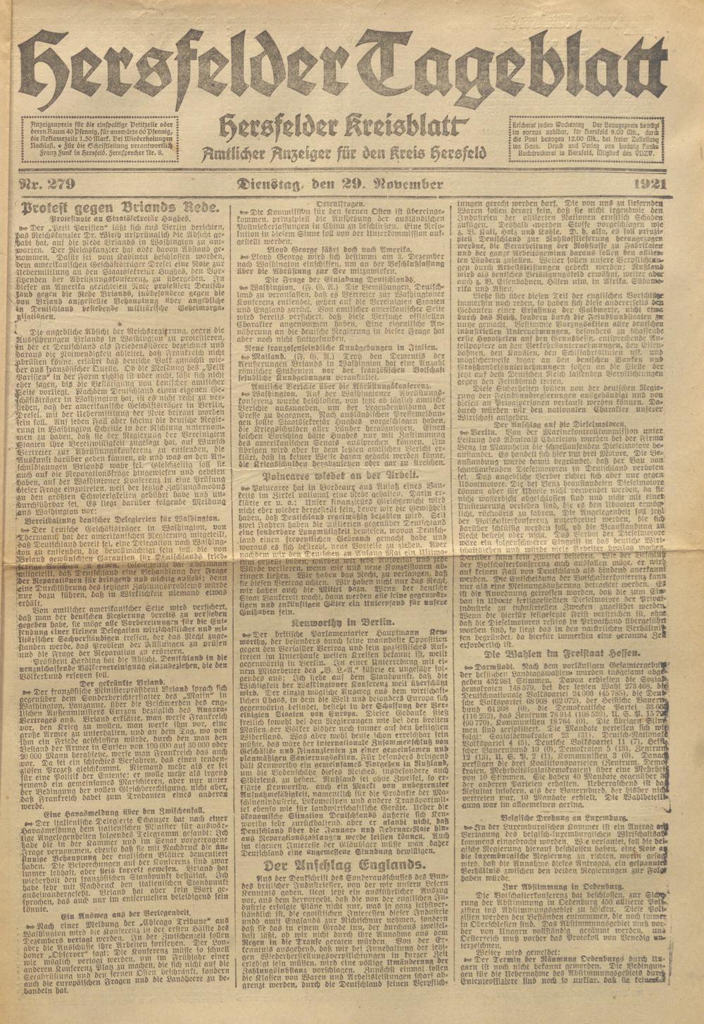Hersfelder Tageblatt. 1913-1933