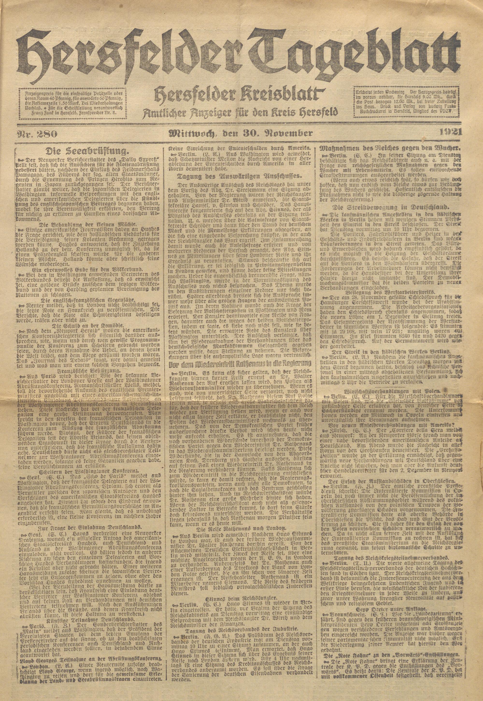 Hersfelder Tageblatt. 1913-1933