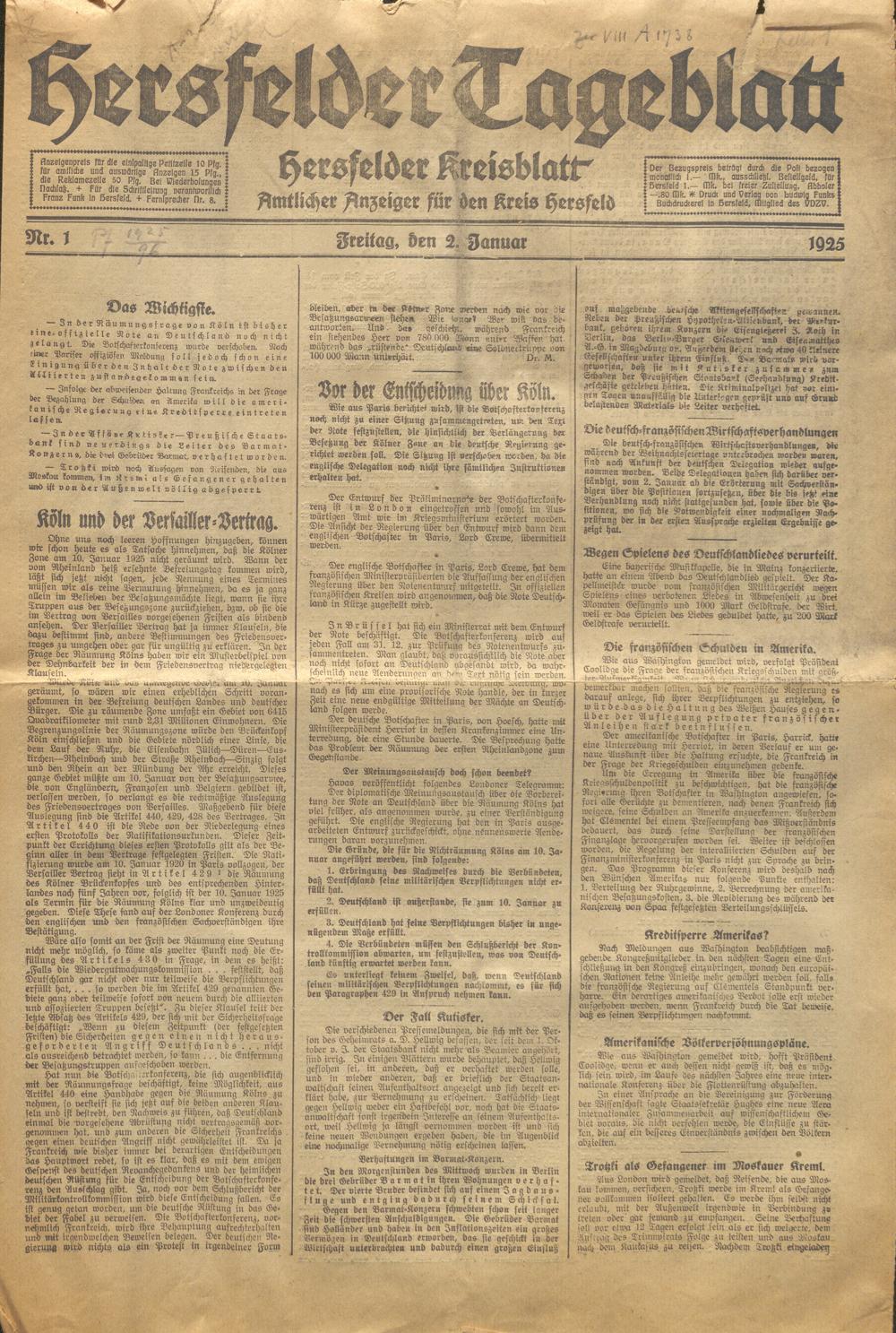 Hersfelder Tageblatt. 1913-1933