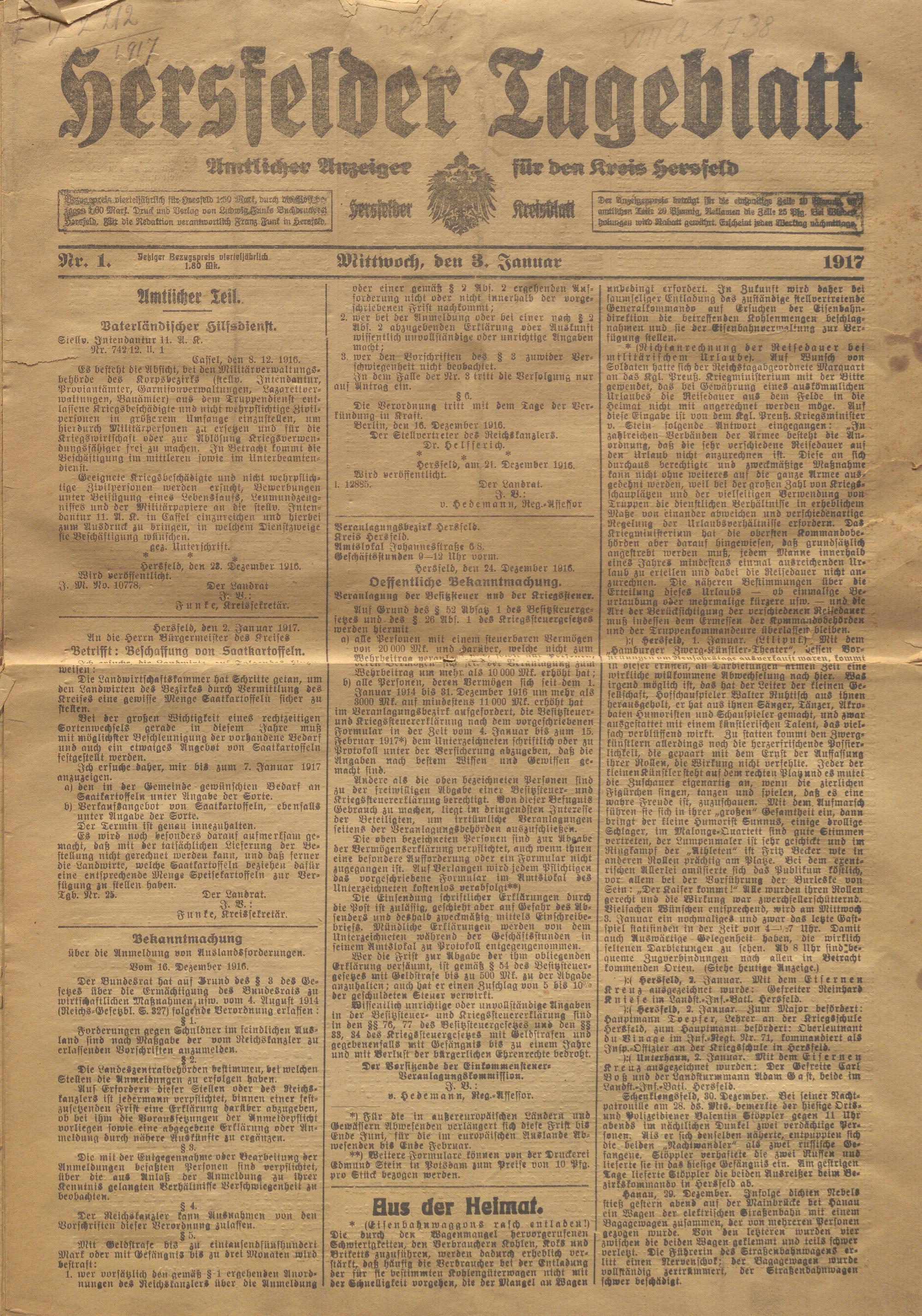 Hersfelder Tageblatt. 1913-1933