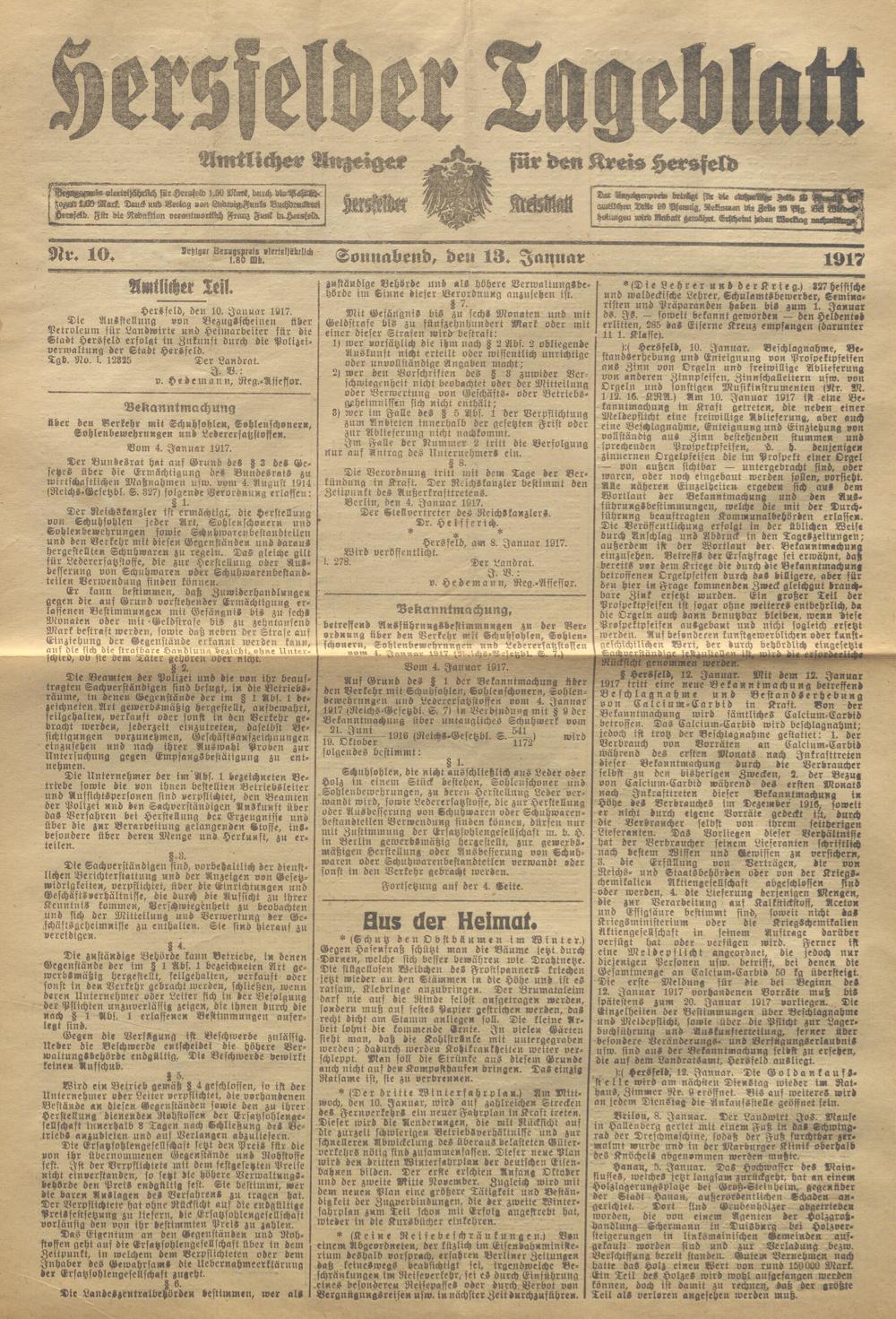 Hersfelder Tageblatt. 1913-1933