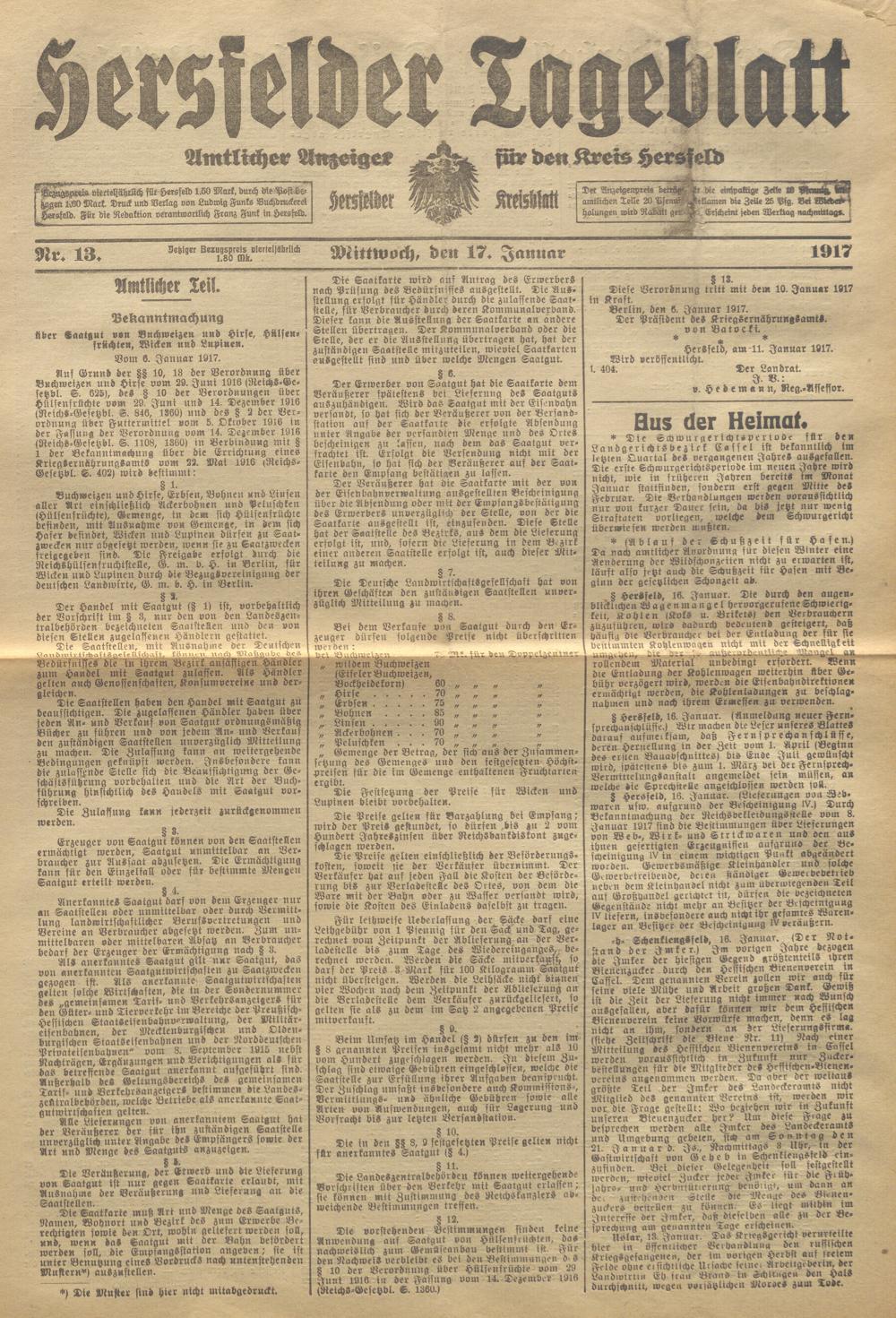 Hersfelder Tageblatt. 1913-1933