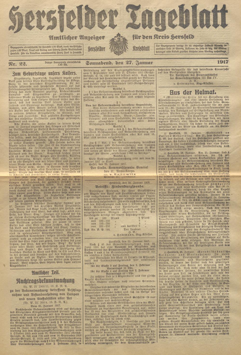 Hersfelder Tageblatt. 1913-1933