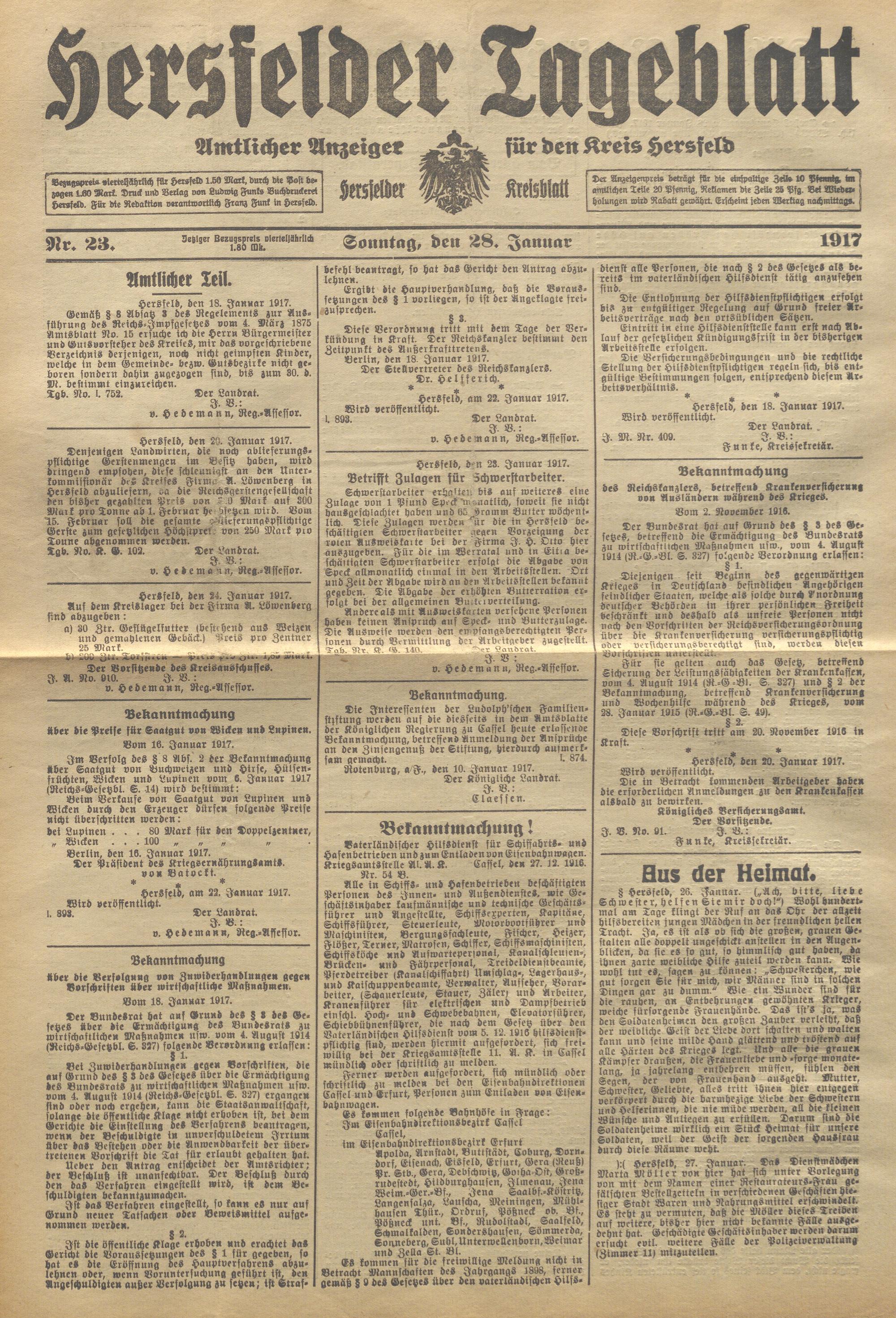 Hersfelder Tageblatt. 1913-1933