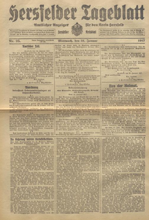 Hersfelder Tageblatt. 1913-1933