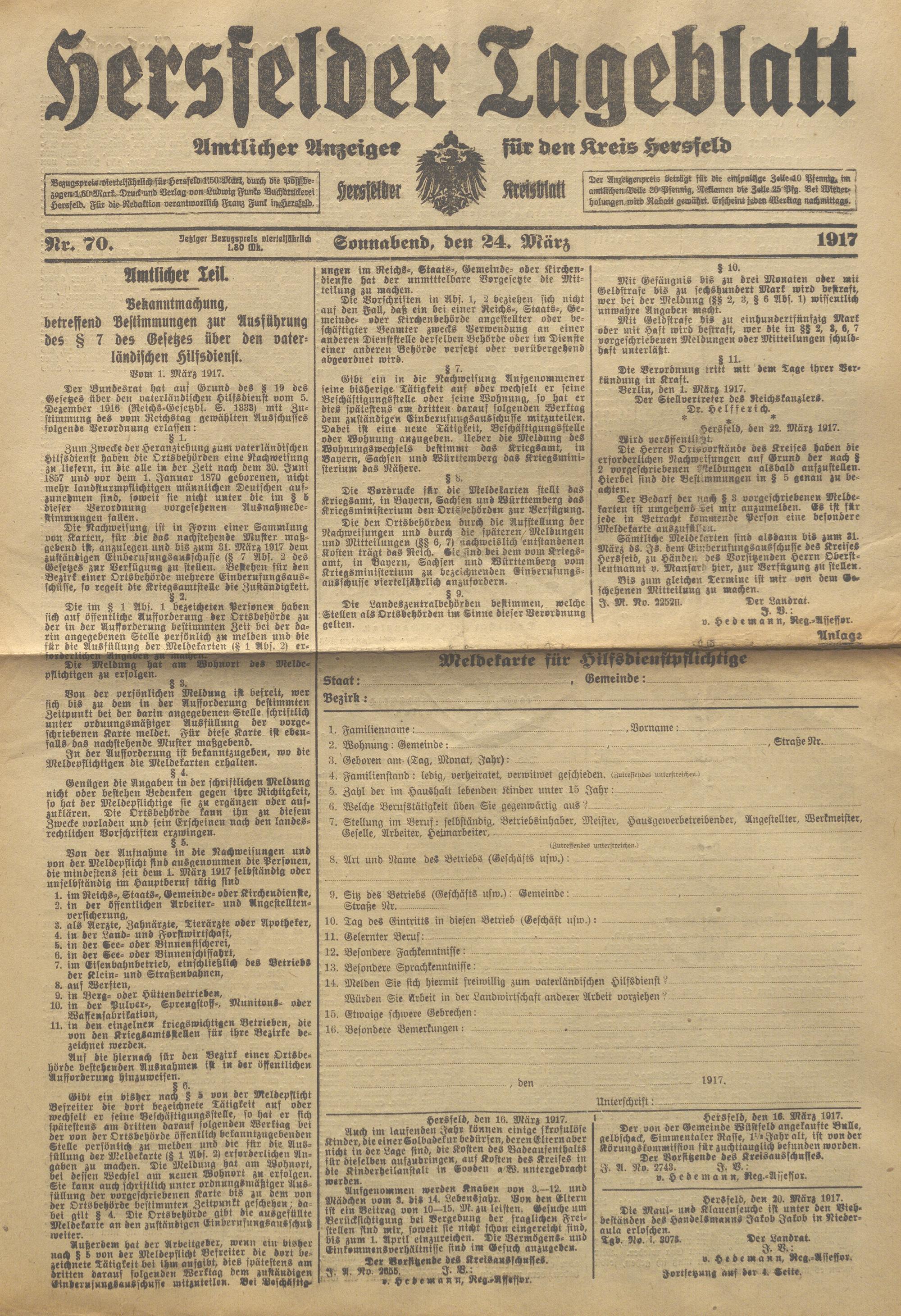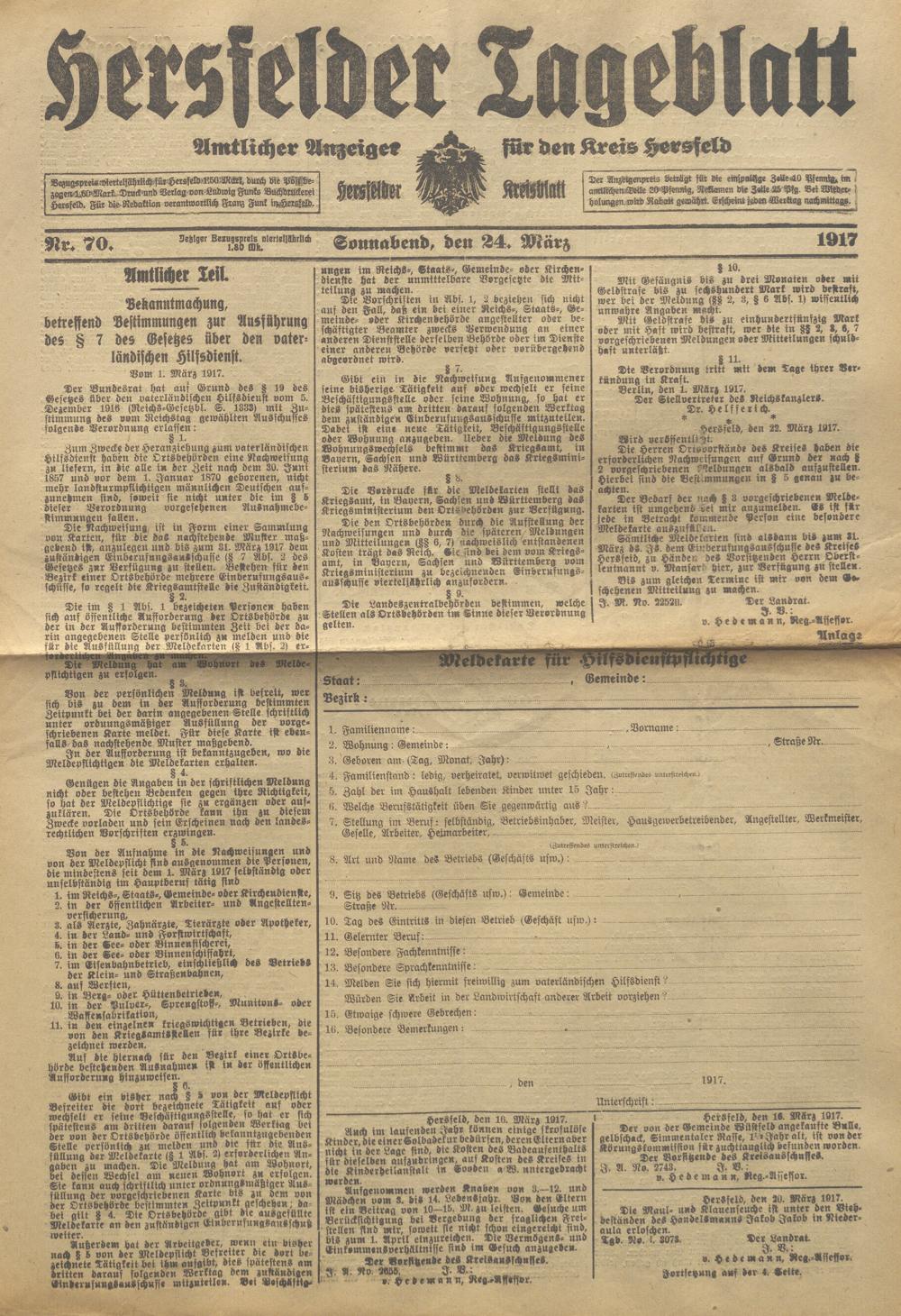 Hersfelder Tageblatt. 1913-1933