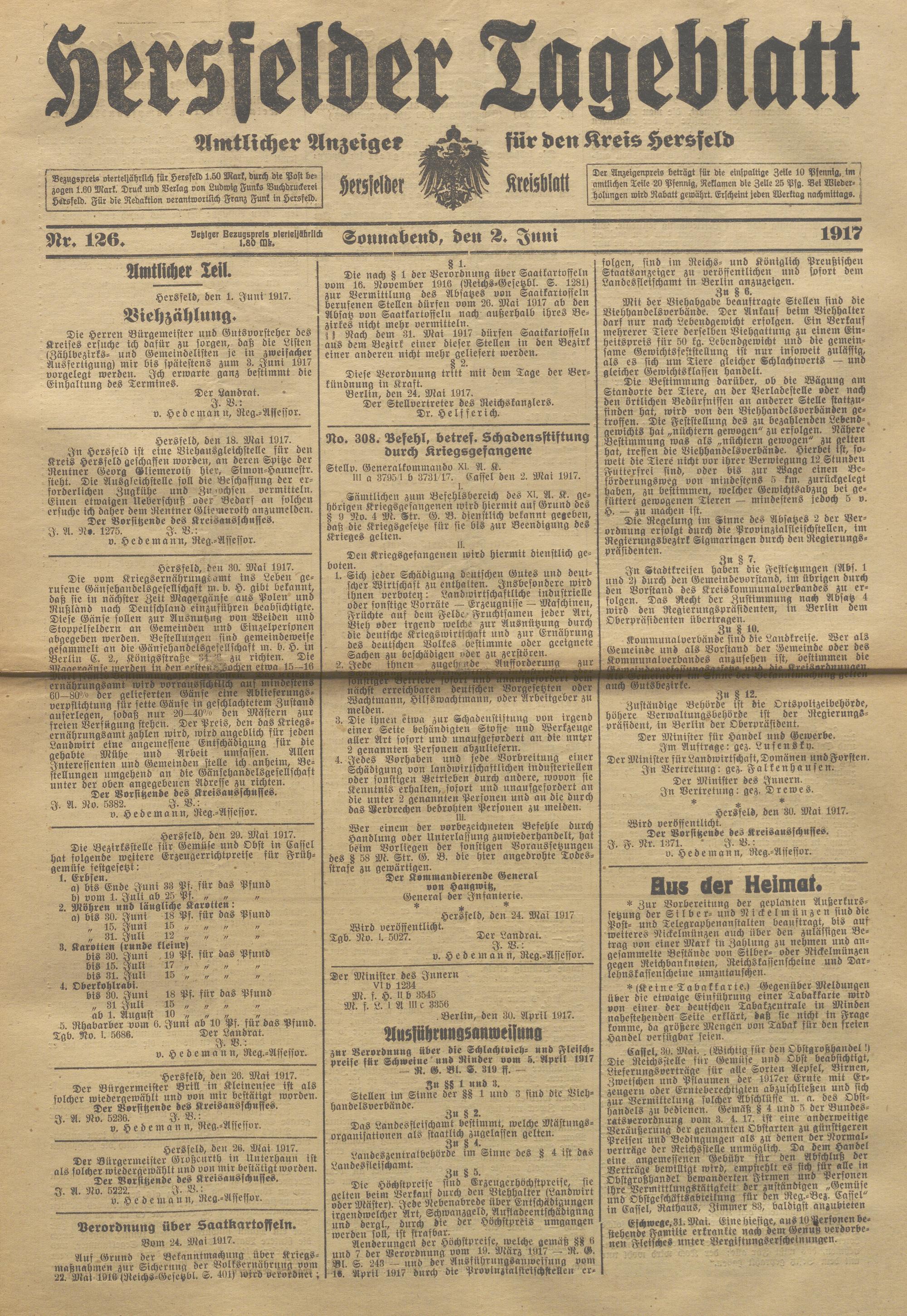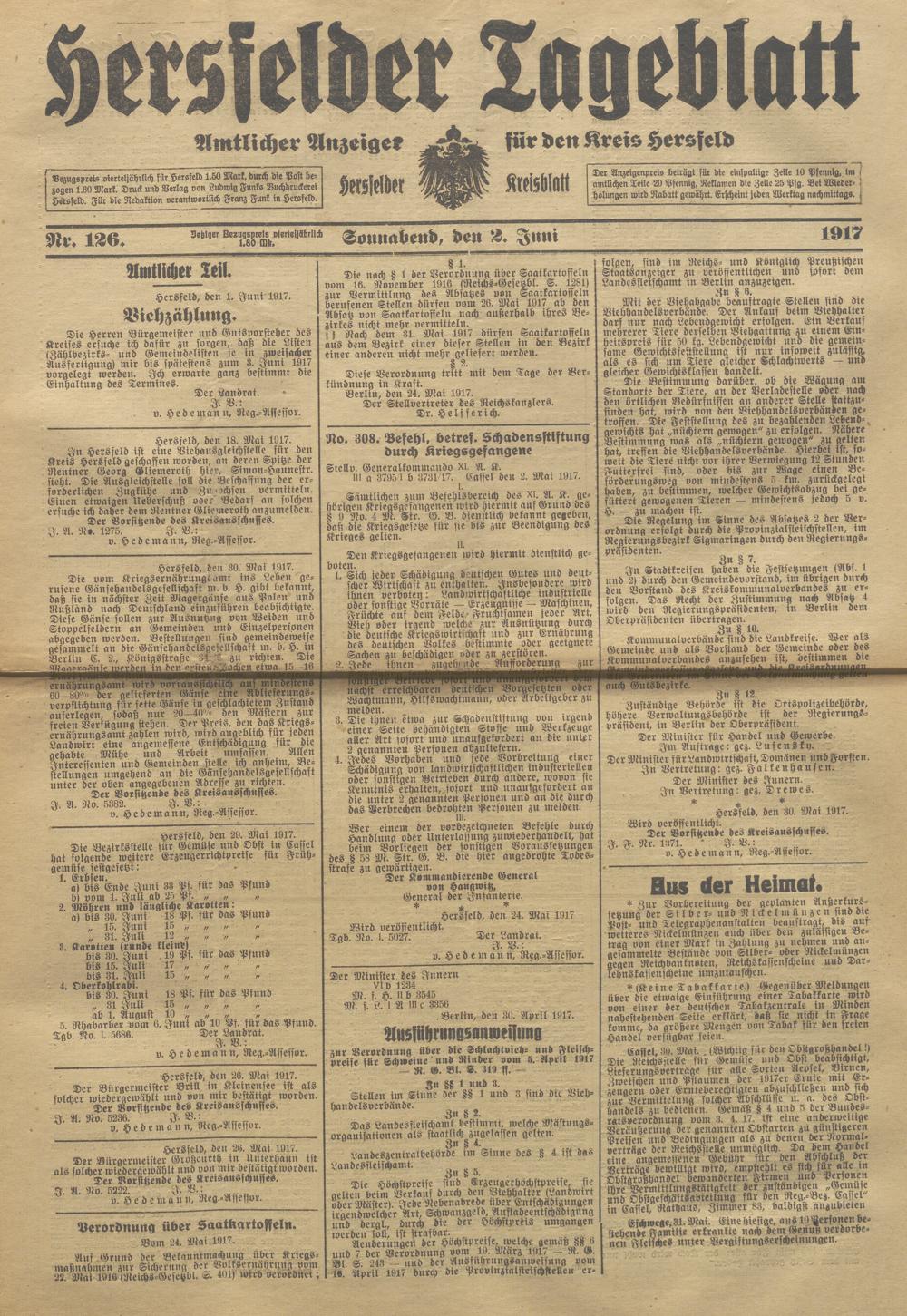 Hersfelder Tageblatt. 1913-1933