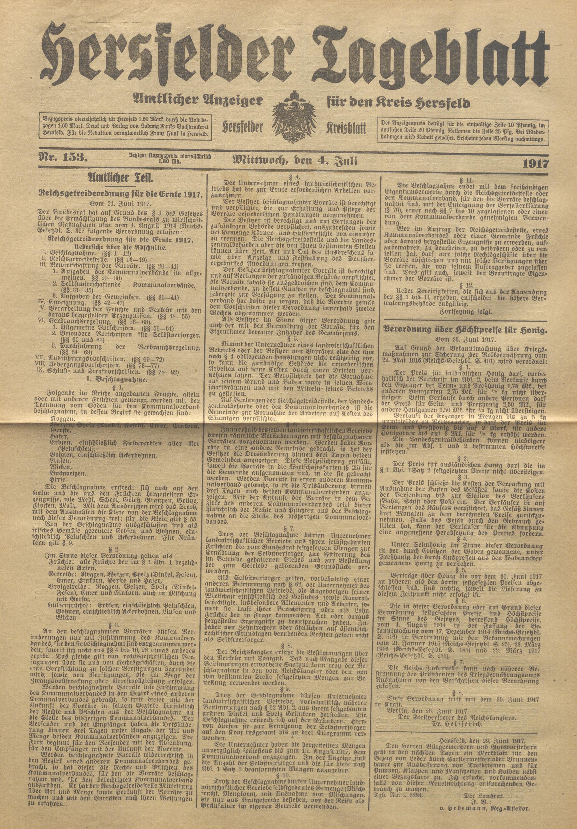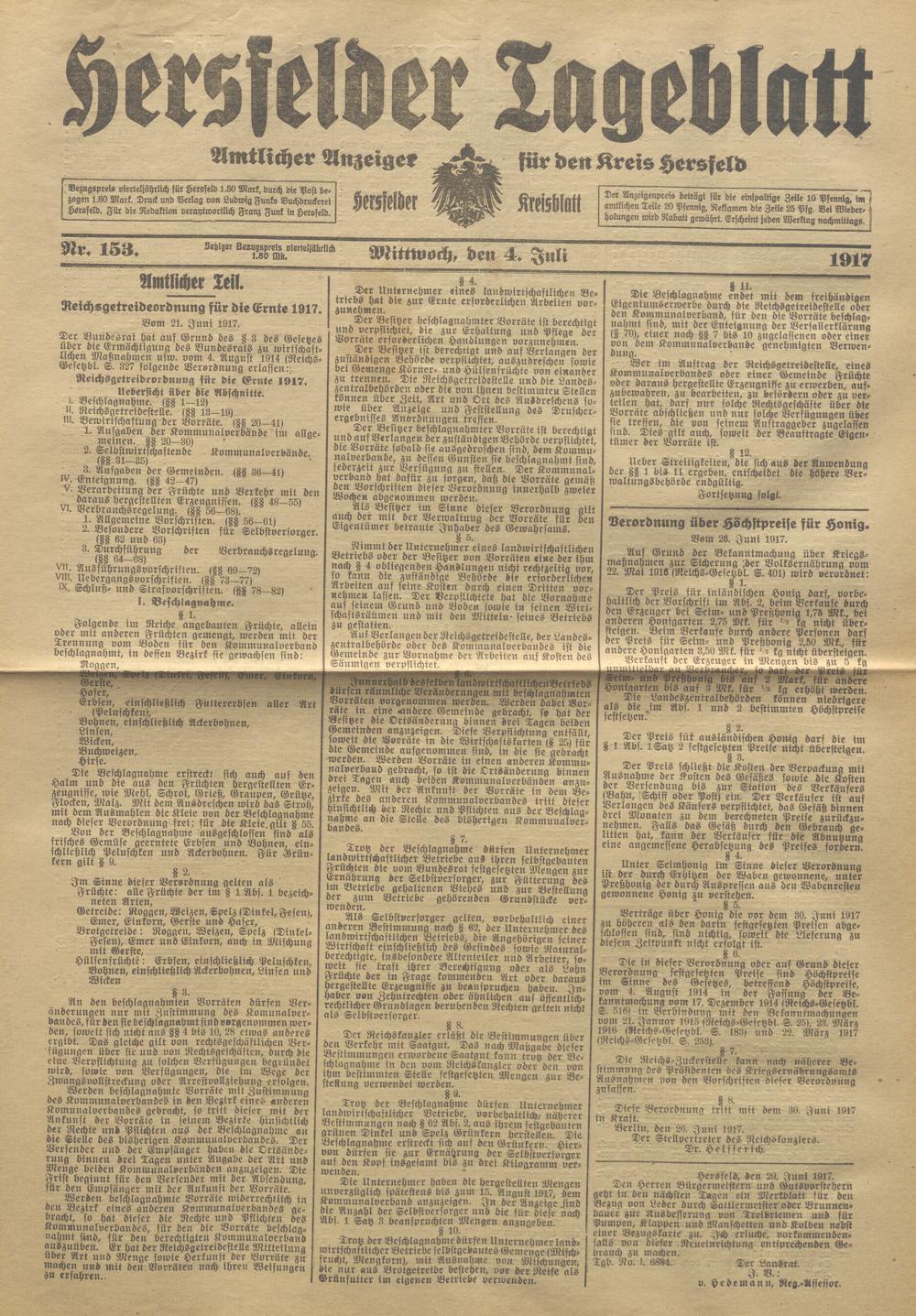 Hersfelder Tageblatt. 1913-1933