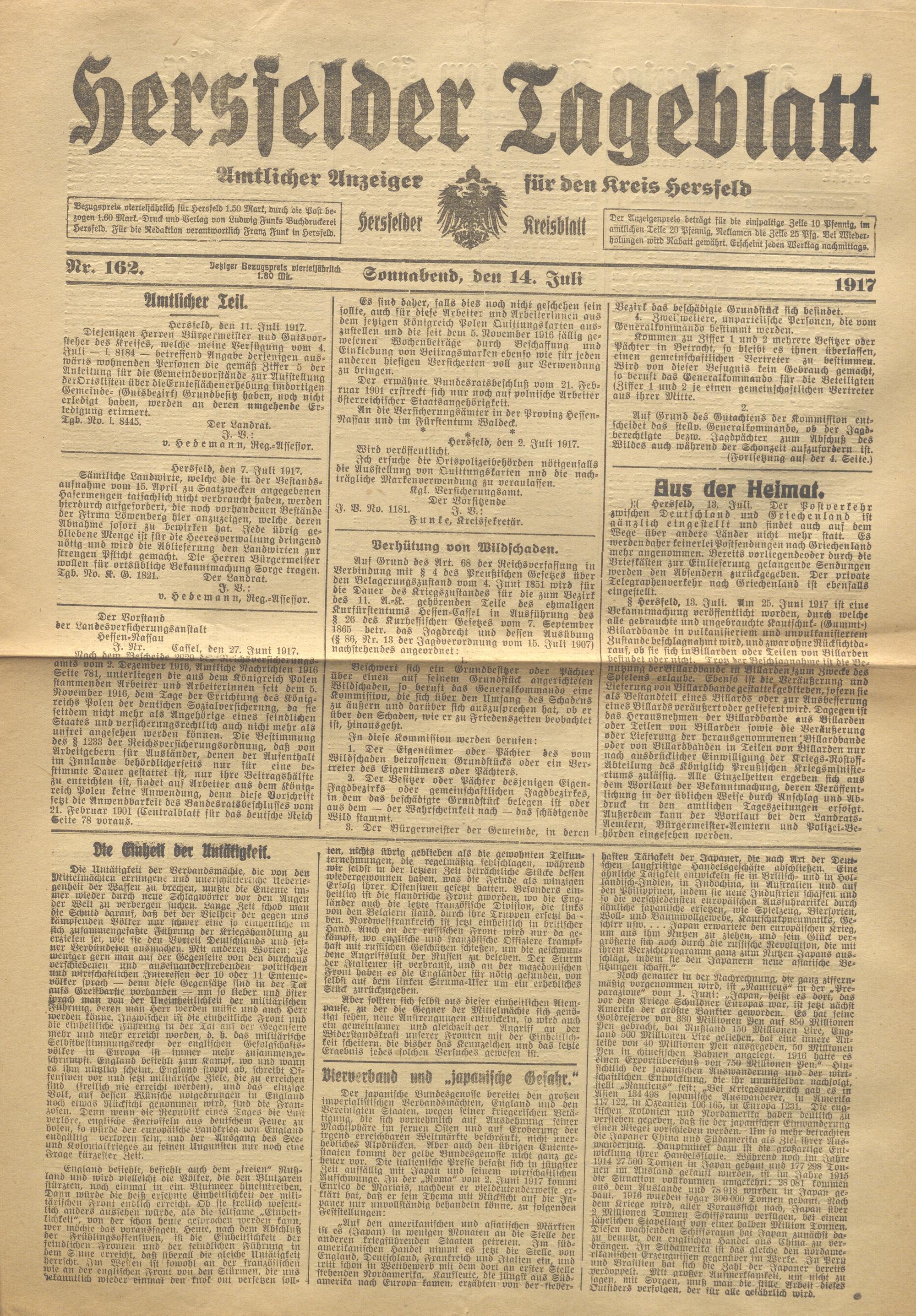 Hersfelder Tageblatt. 1913-1933