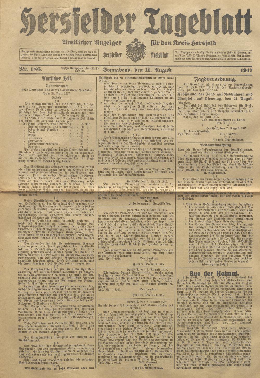 Hersfelder Tageblatt. 1913-1933