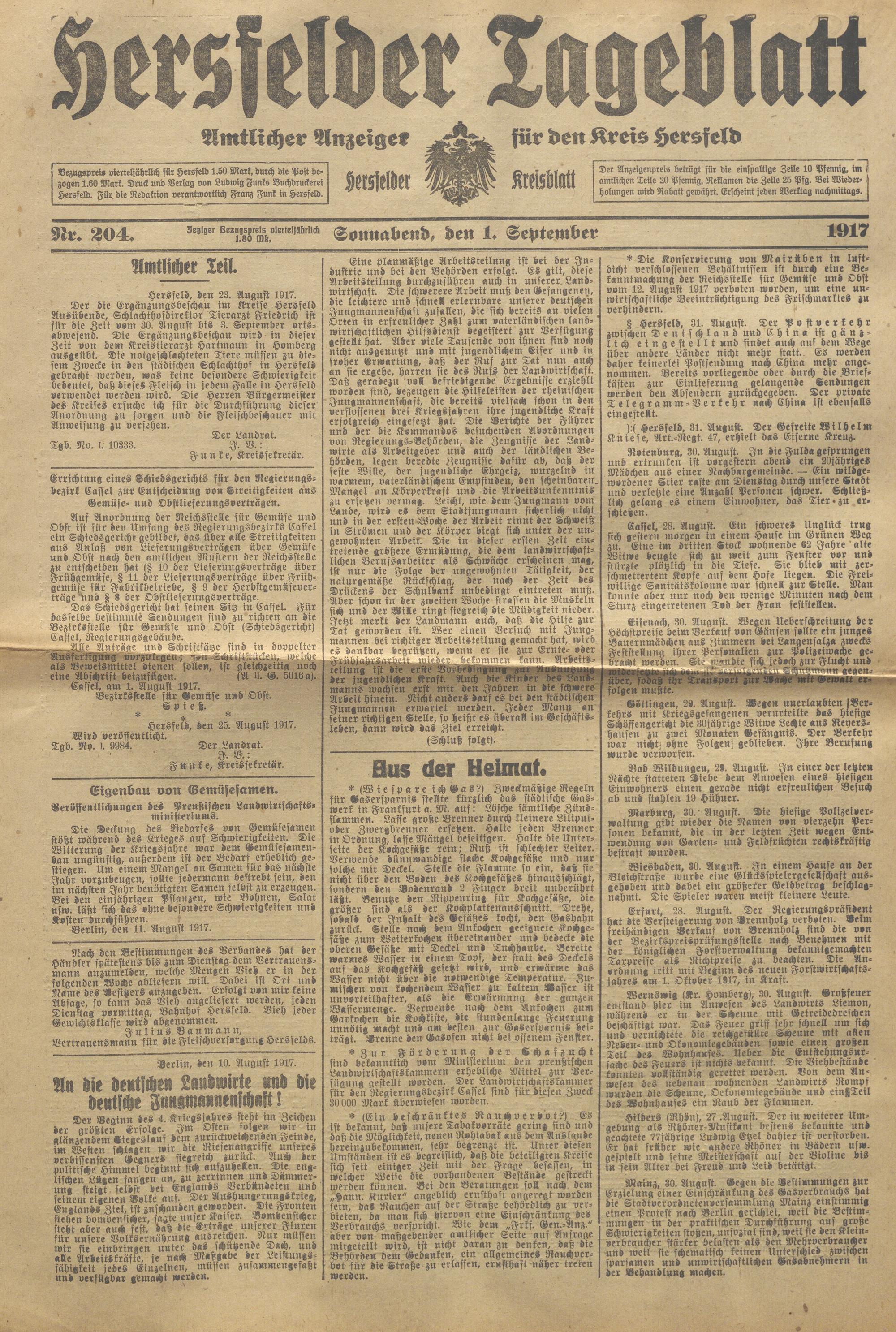 Hersfelder Tageblatt. 1913-1933