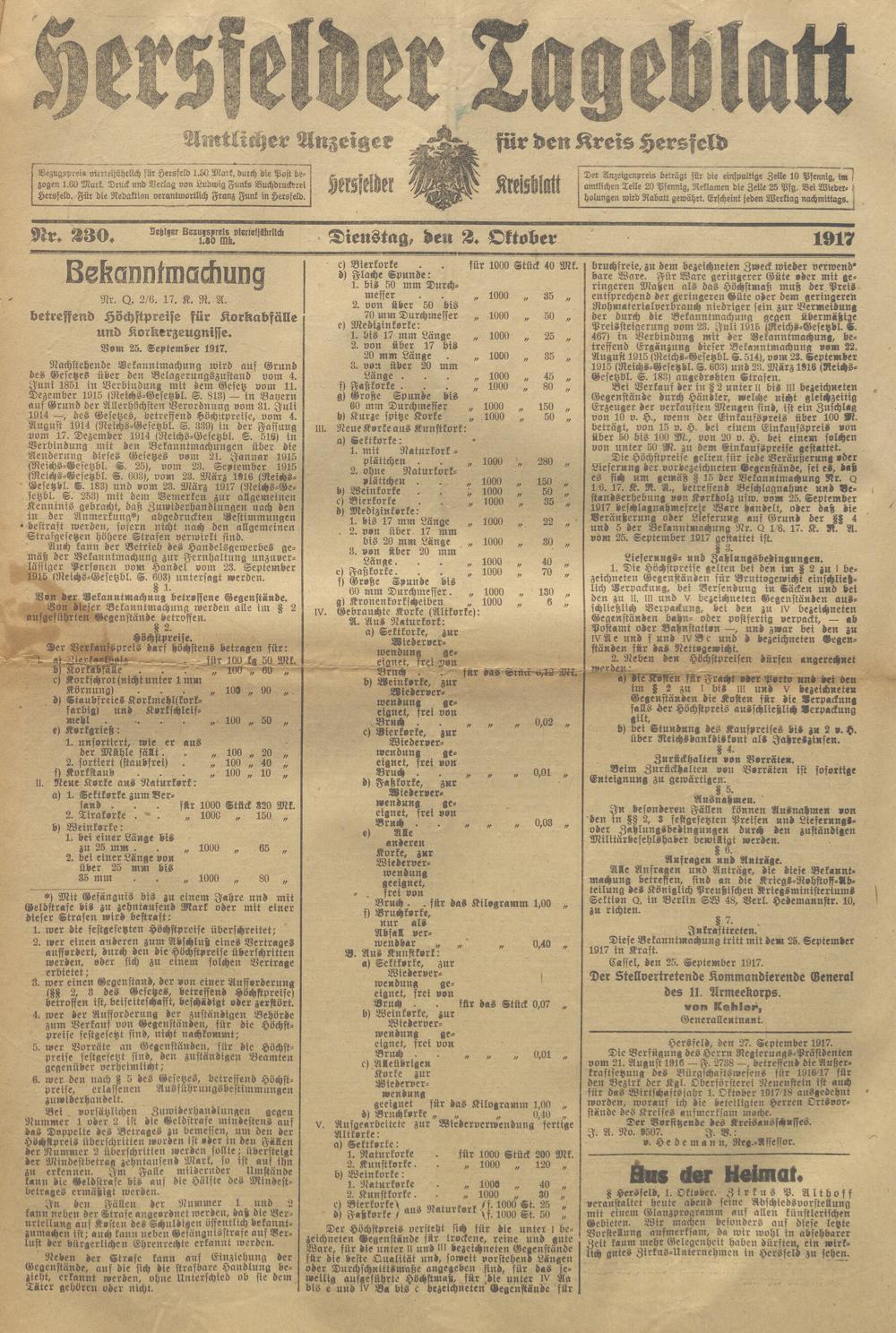 Hersfelder Tageblatt. 1913-1933