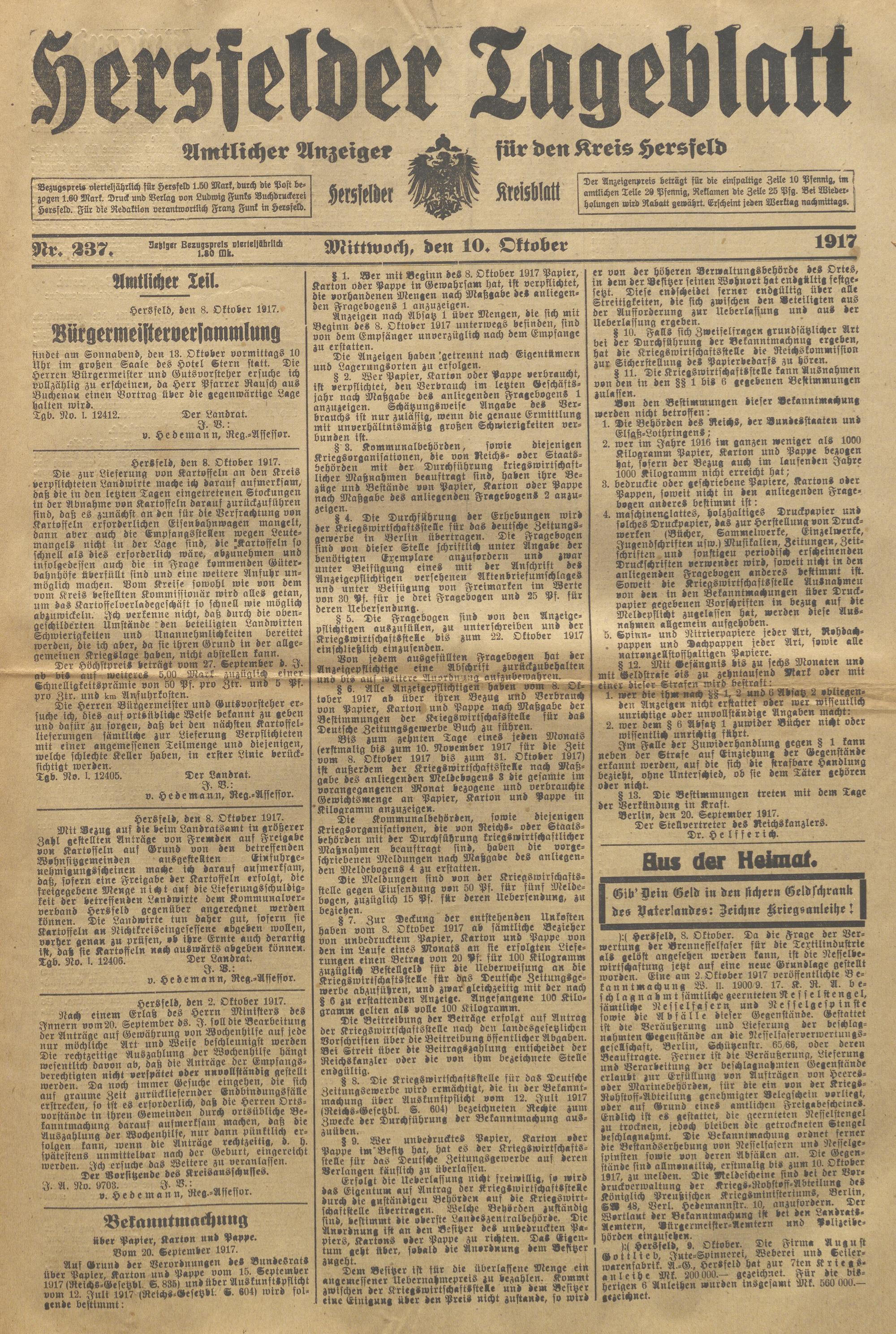 Hersfelder Tageblatt. 1913-1933
