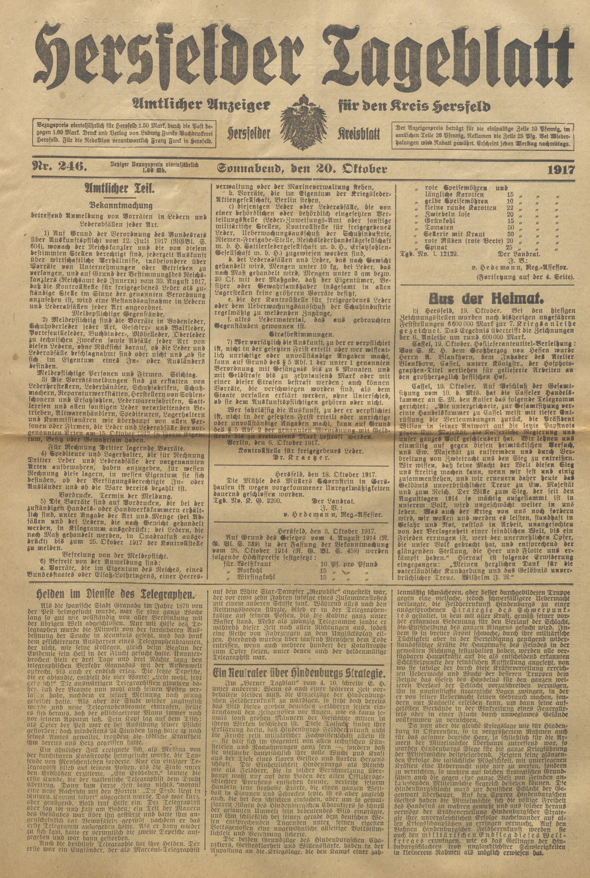 Hersfelder Tageblatt. 1913-1933