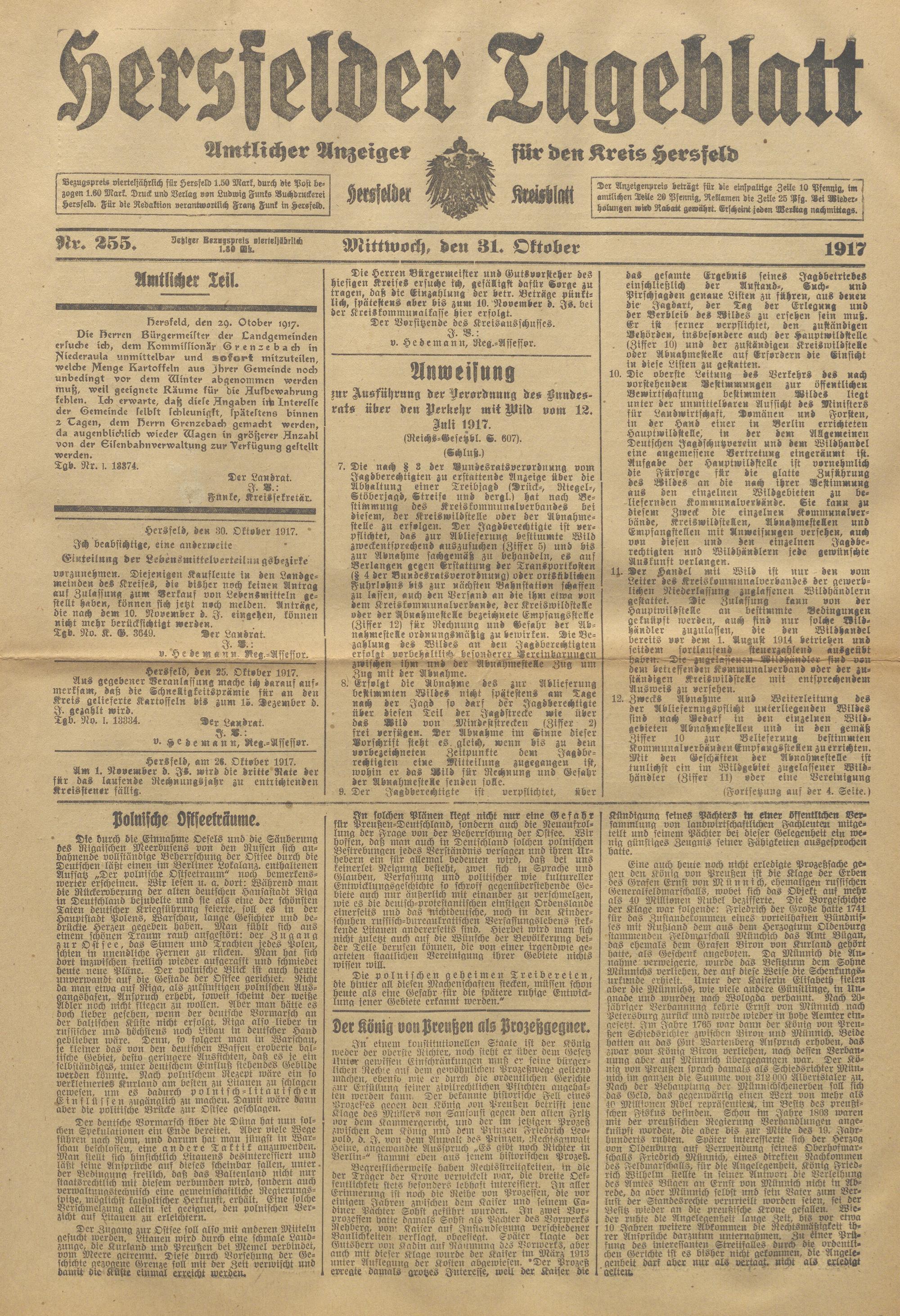 Hersfelder Tageblatt. 1913-1933
