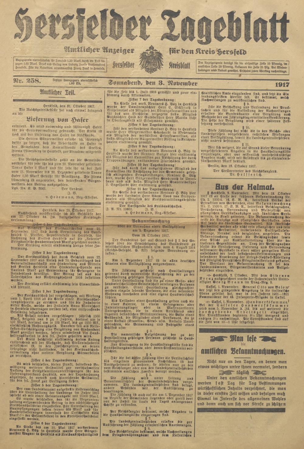 Hersfelder Tageblatt. 1913-1933