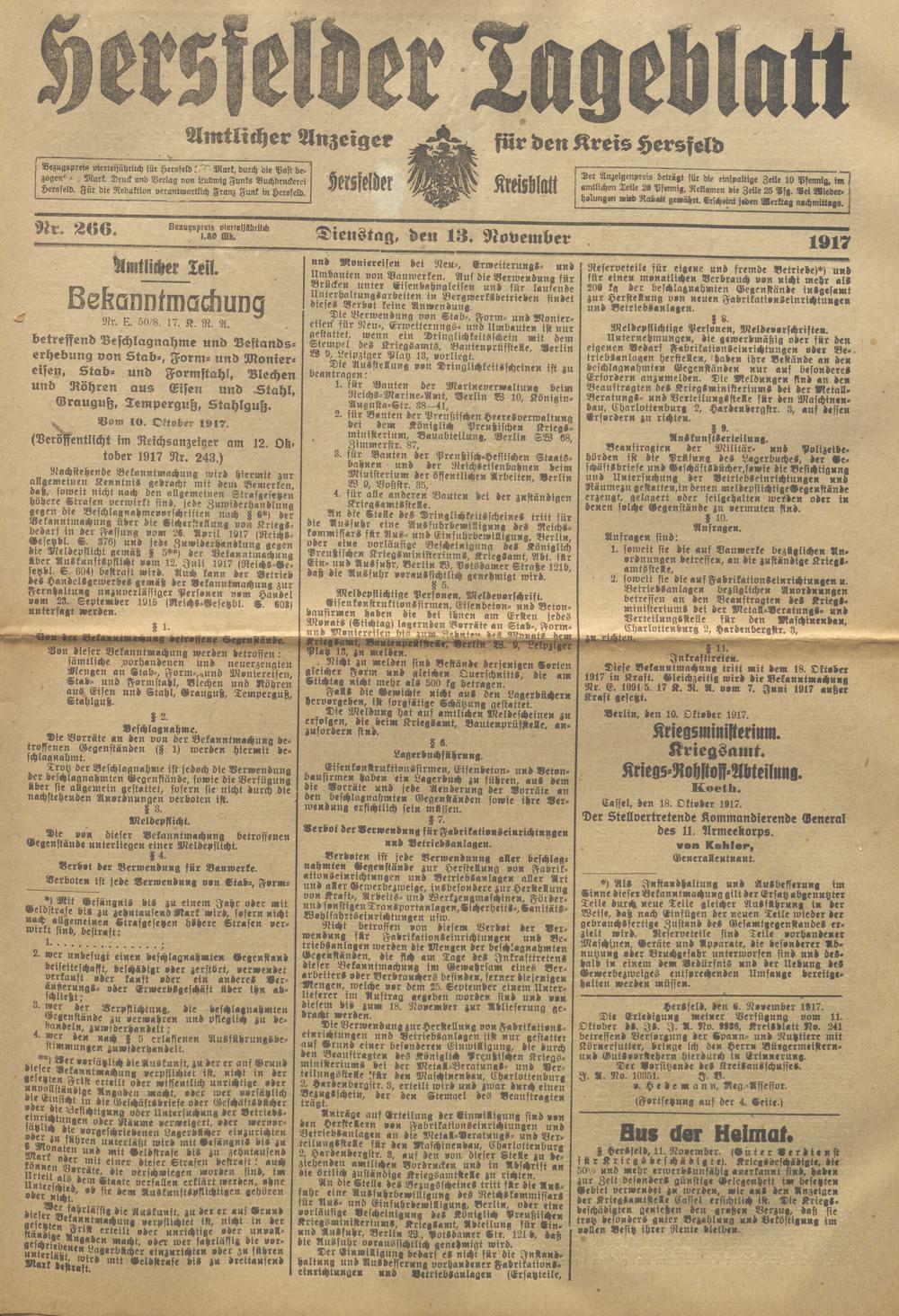 Hersfelder Tageblatt. 1913-1933
