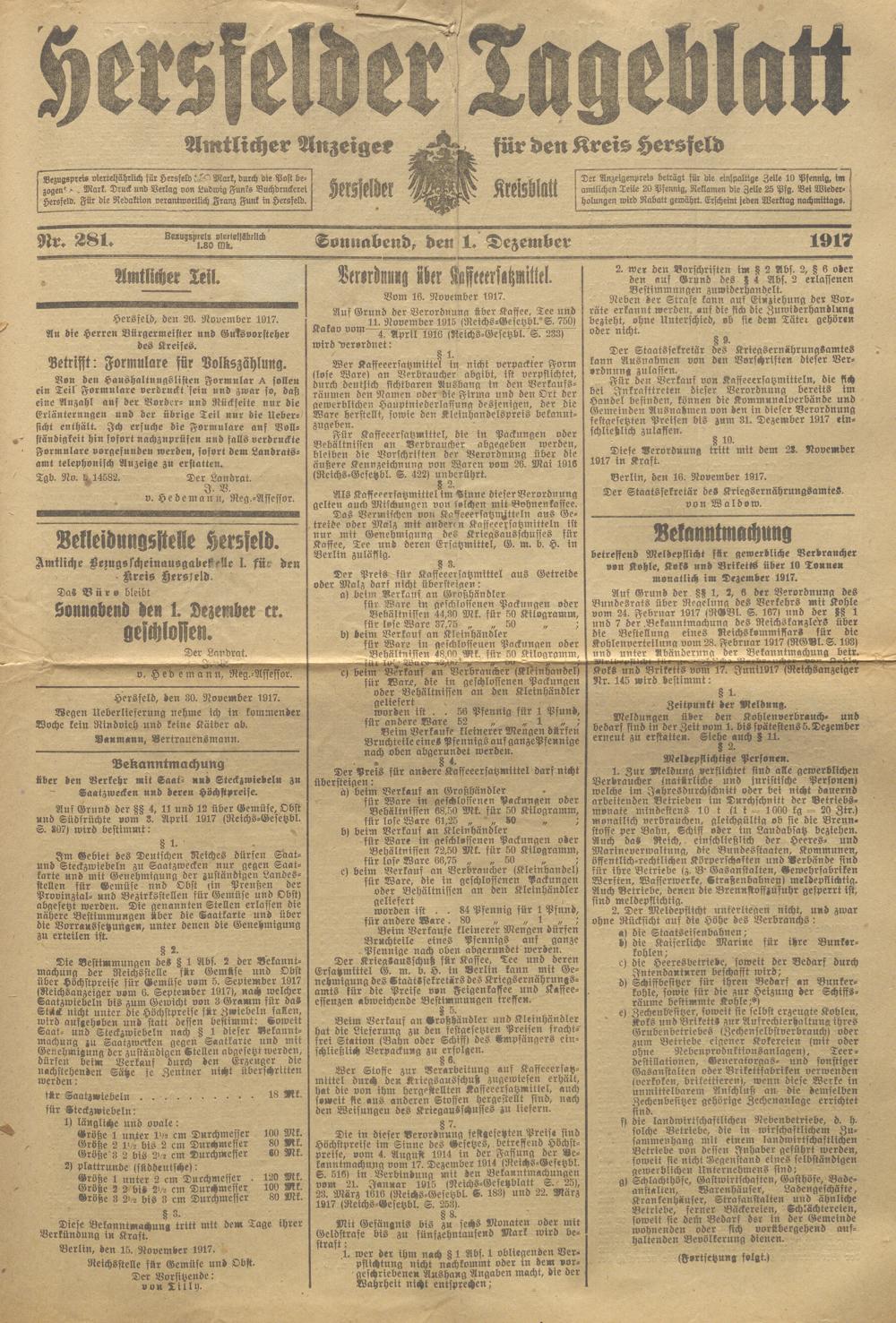 Hersfelder Tageblatt. 1913-1933