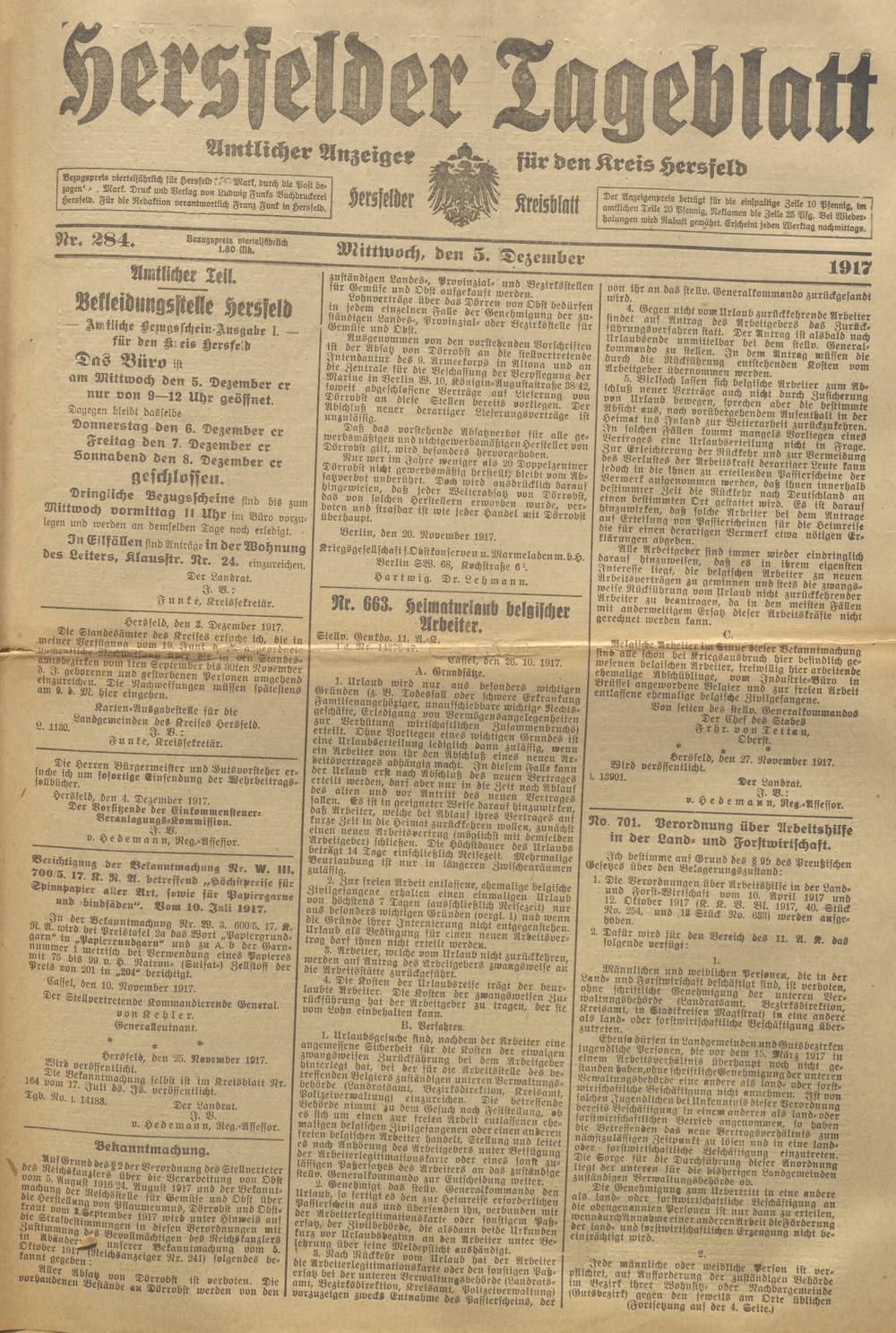 Hersfelder Tageblatt. 1913-1933