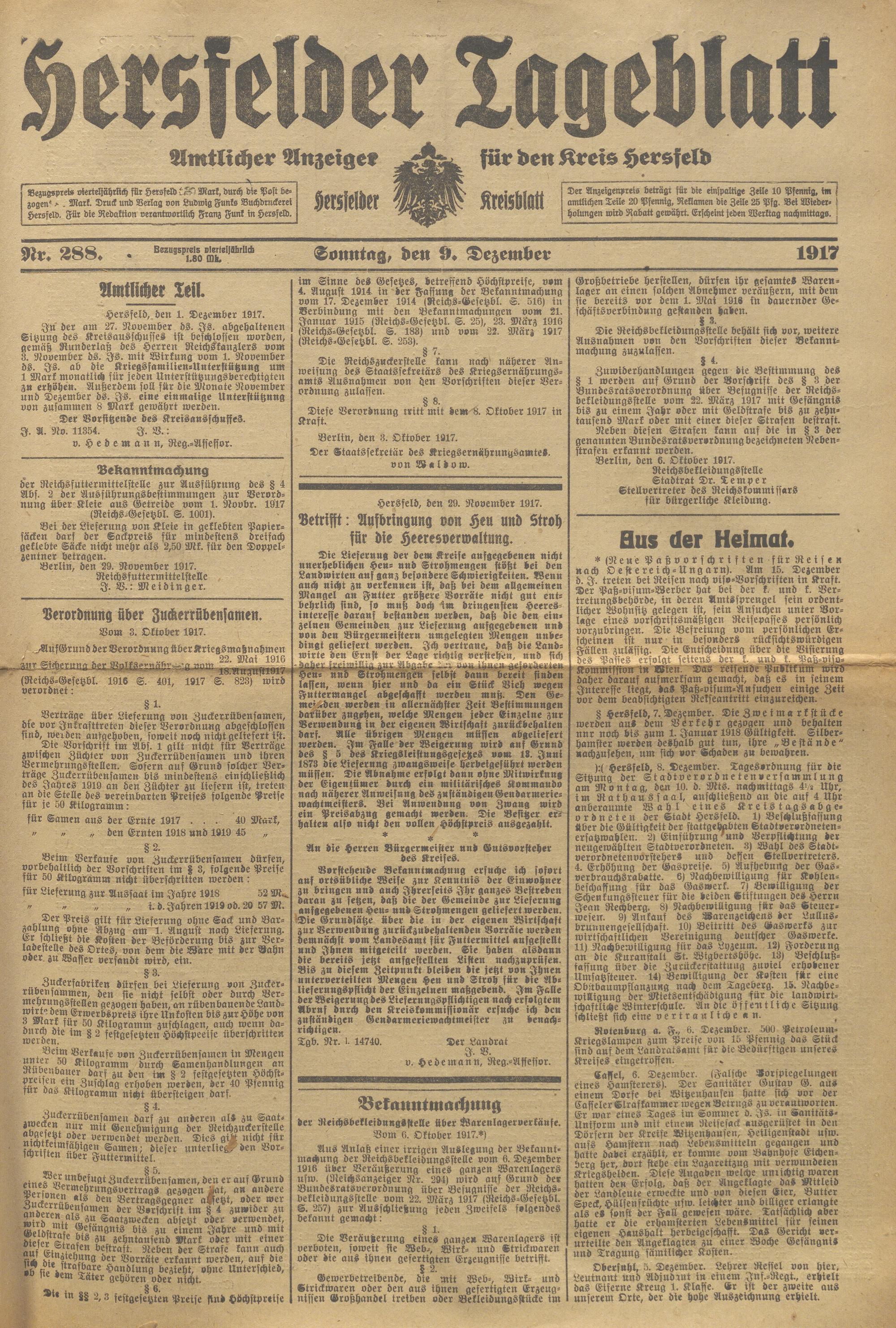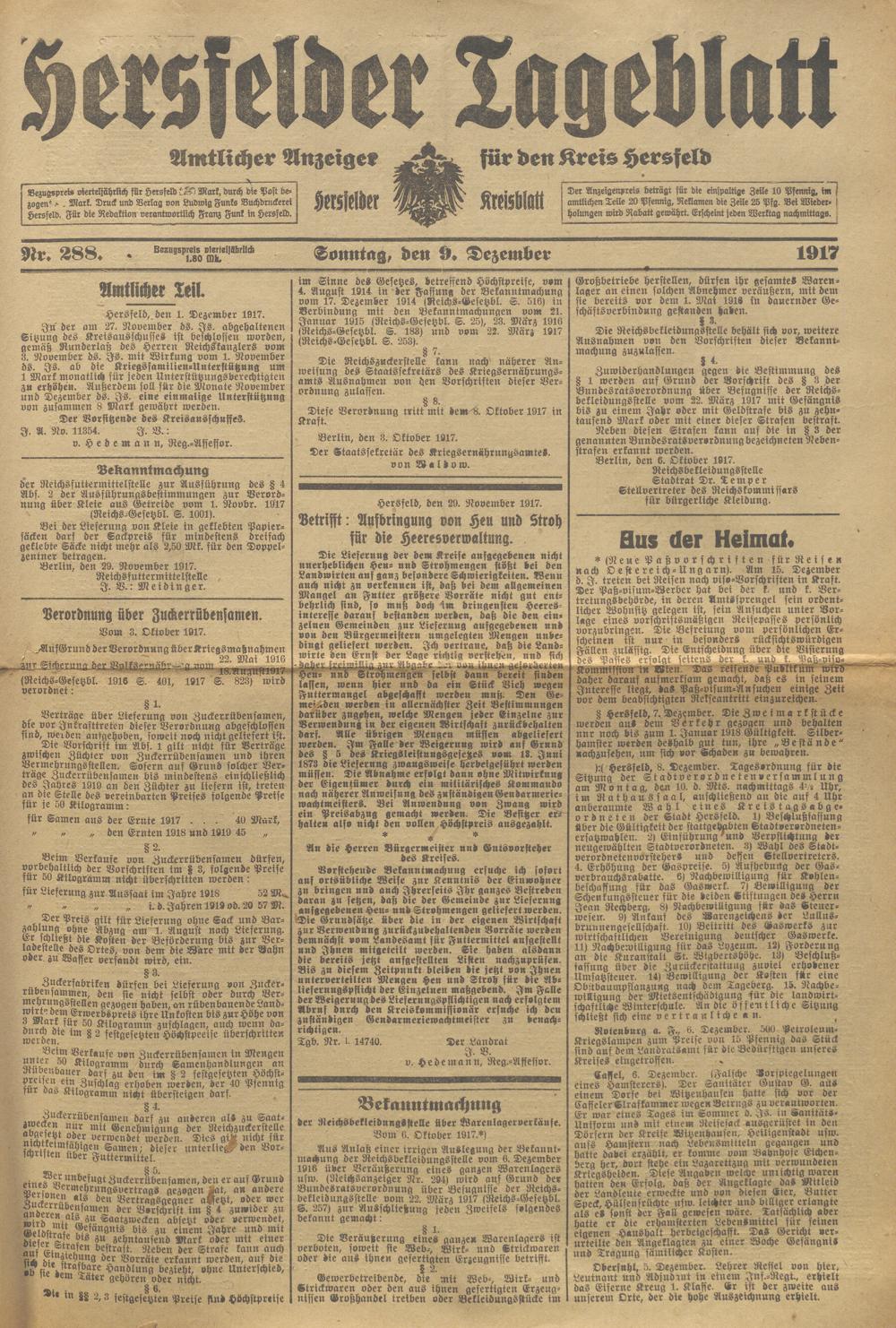 Hersfelder Tageblatt. 1913-1933