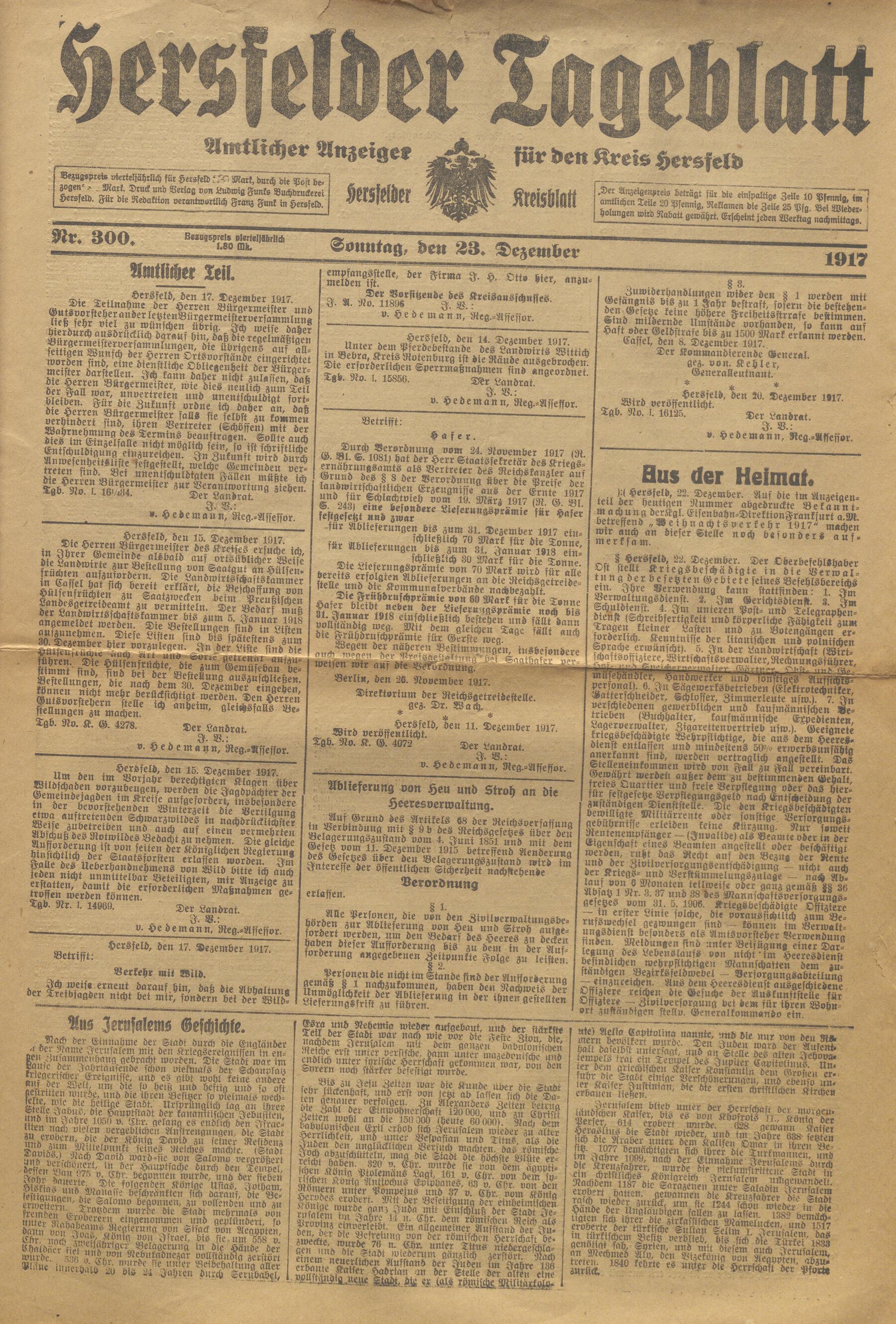 Hersfelder Tageblatt. 1913-1933