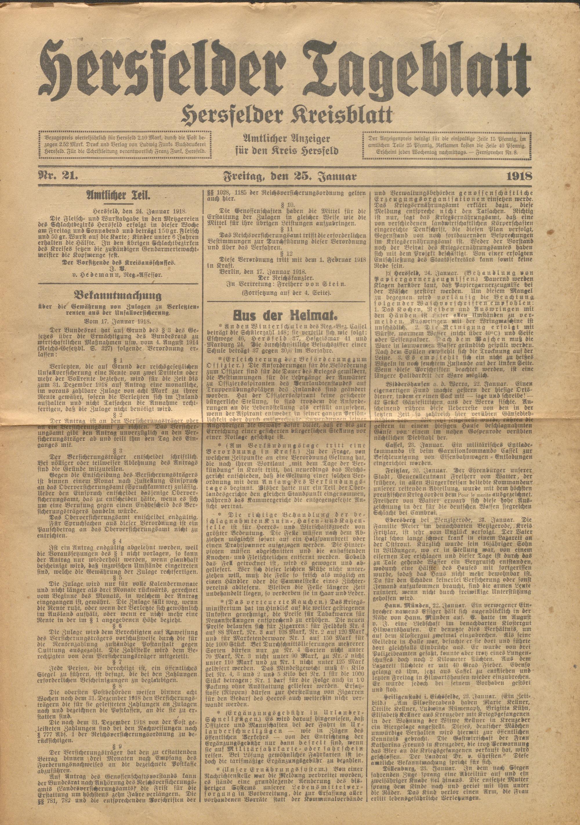 Hersfelder Tageblatt. 1913-1933