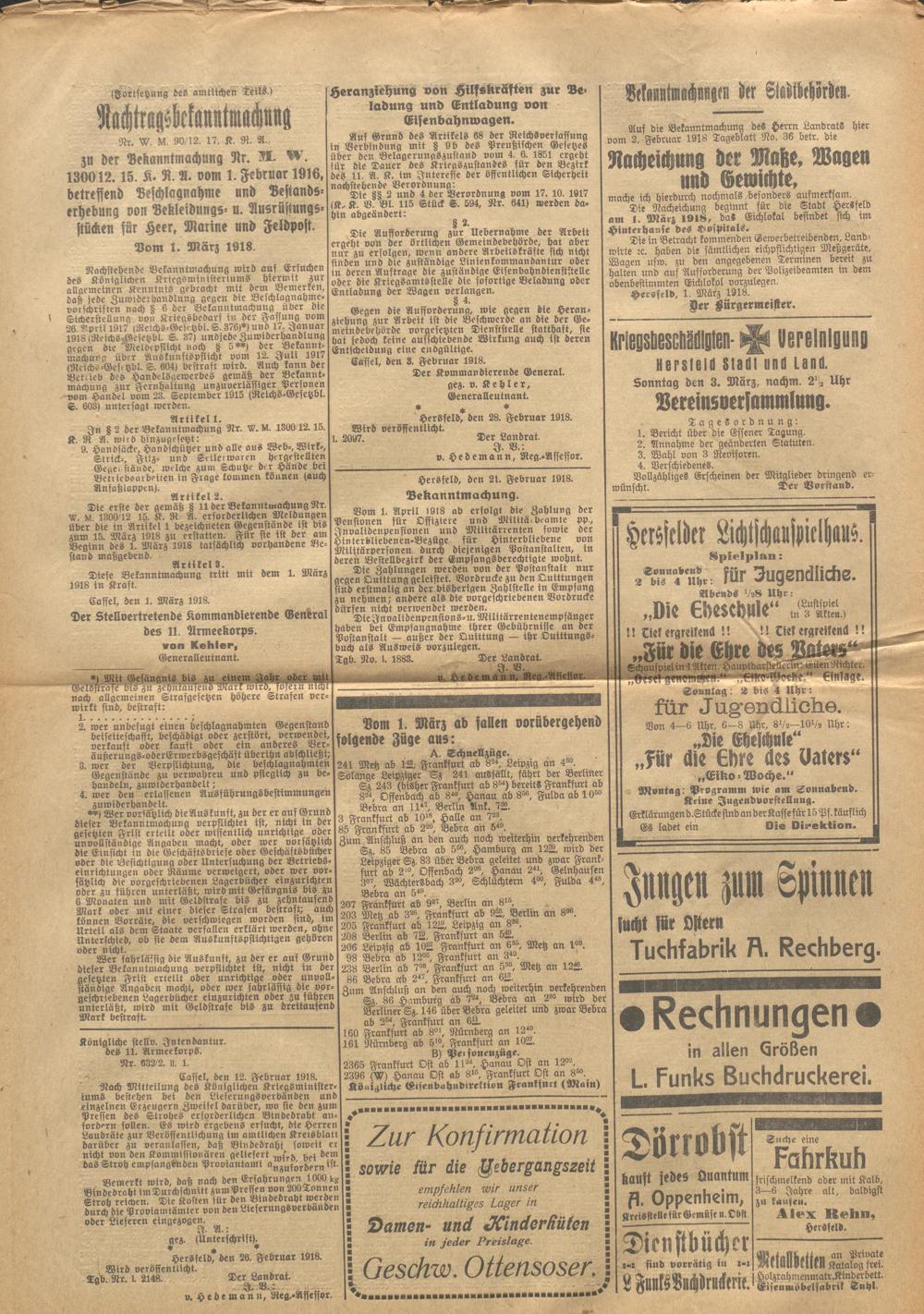 Hersfelder Tageblatt. 1913-1933