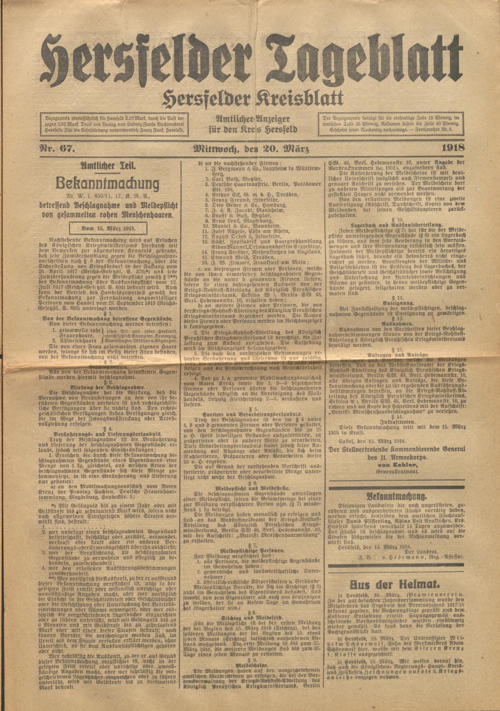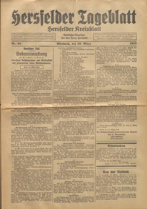 Hersfelder Tageblatt. 1913-1933
