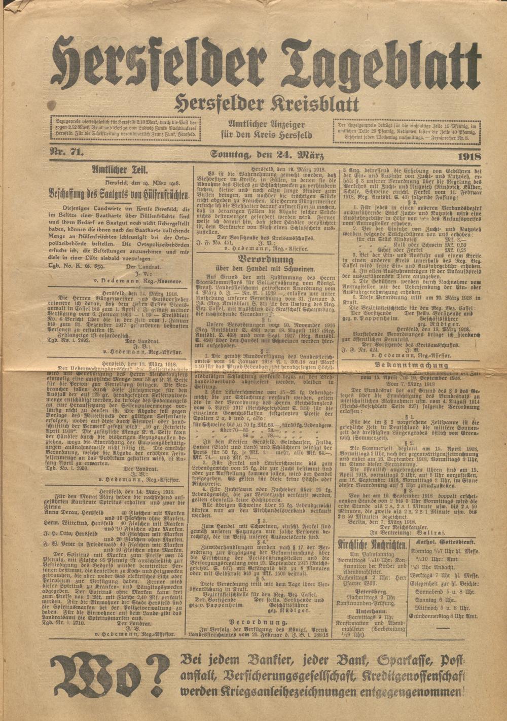 Hersfelder Tageblatt. 1913-1933