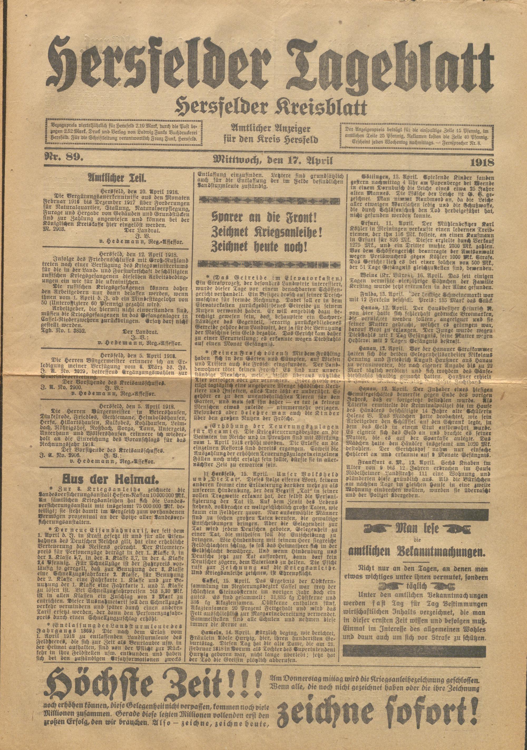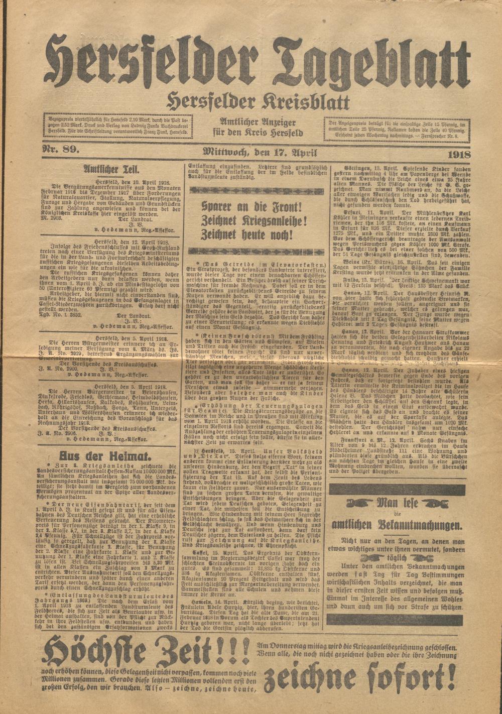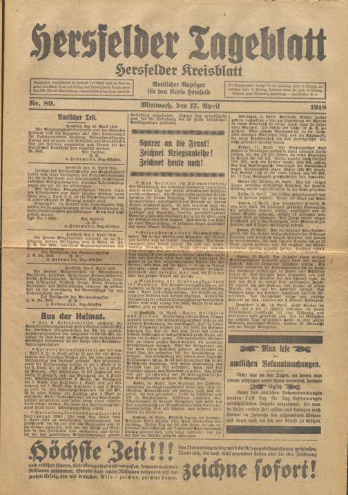 Hersfelder Tageblatt. 1913-1933