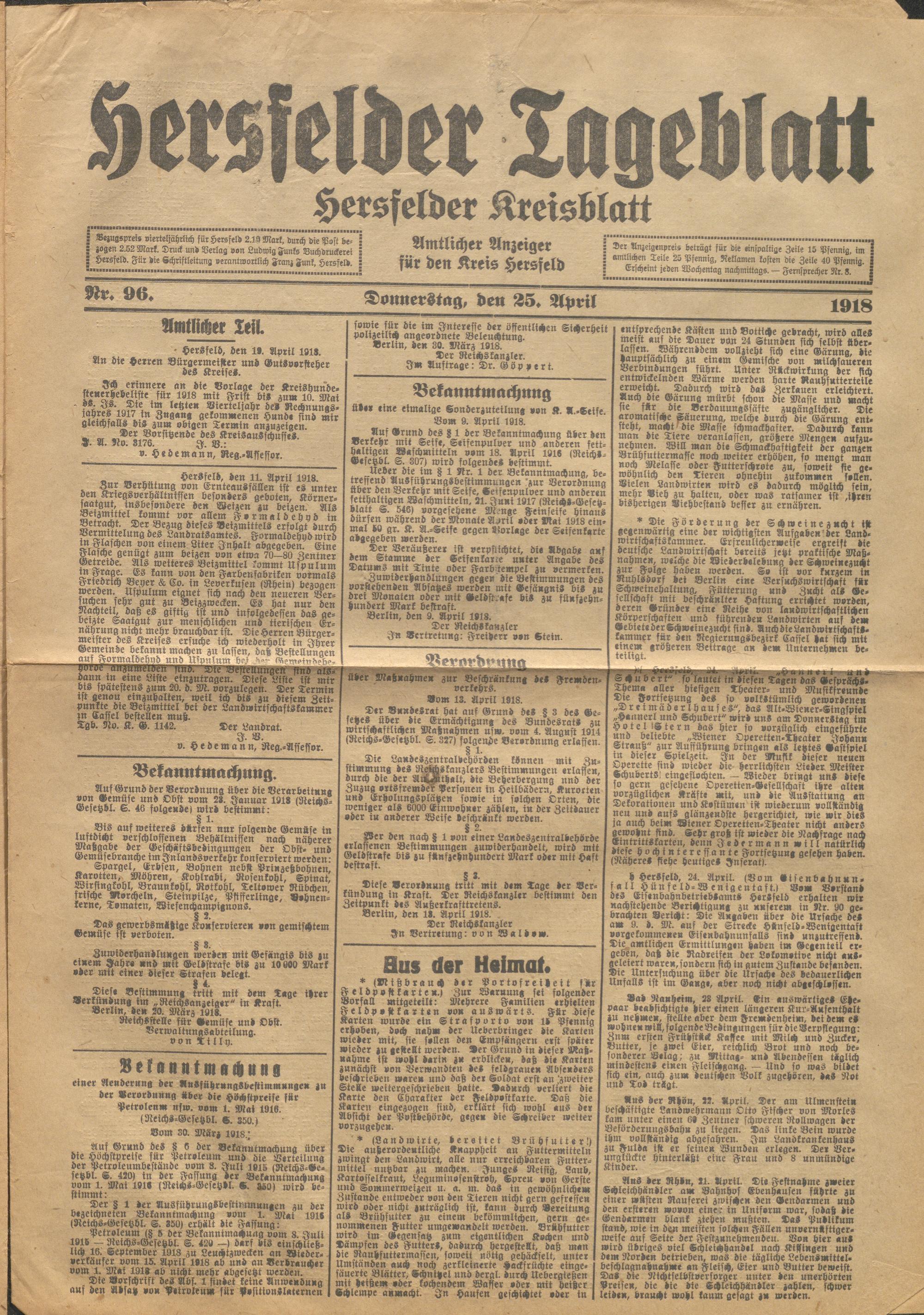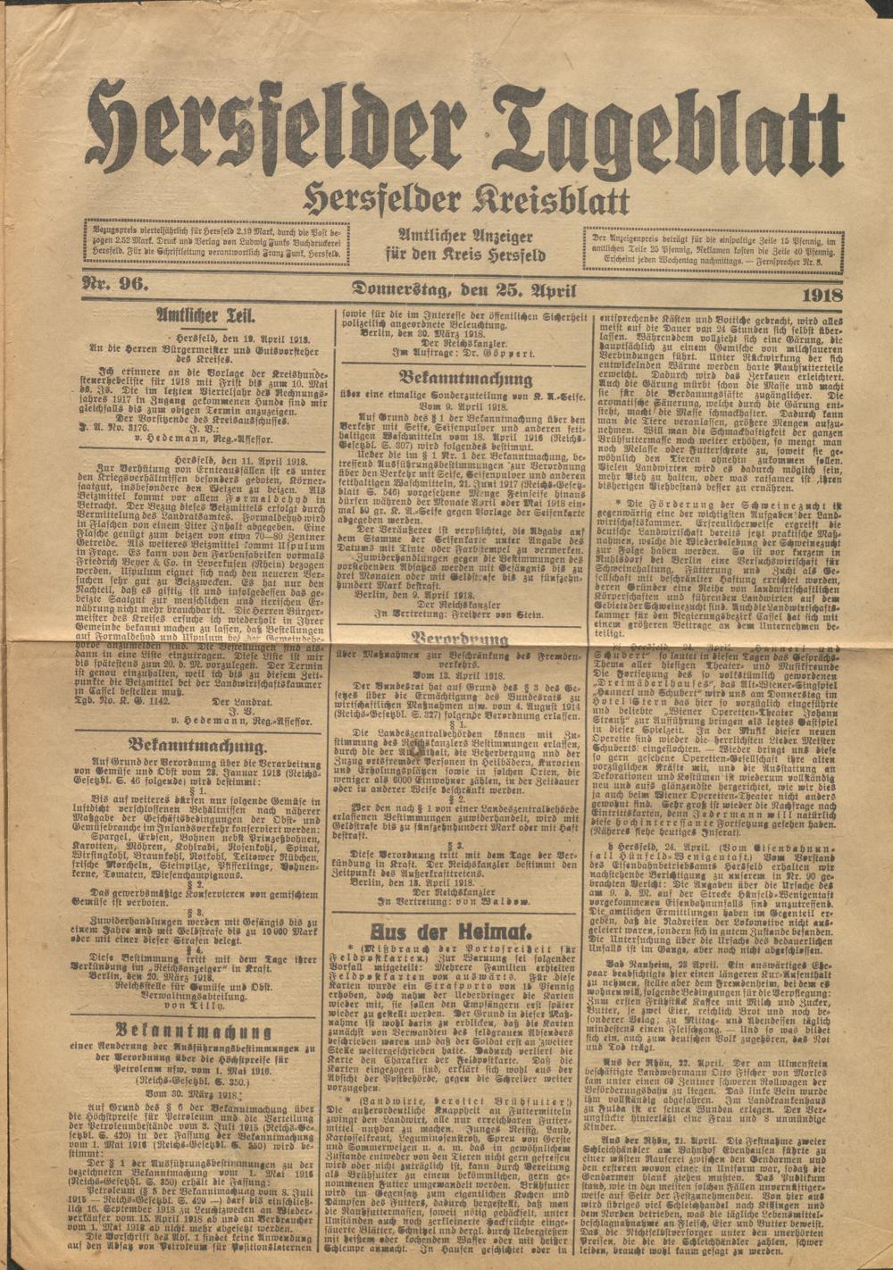 Hersfelder Tageblatt. 1913-1933