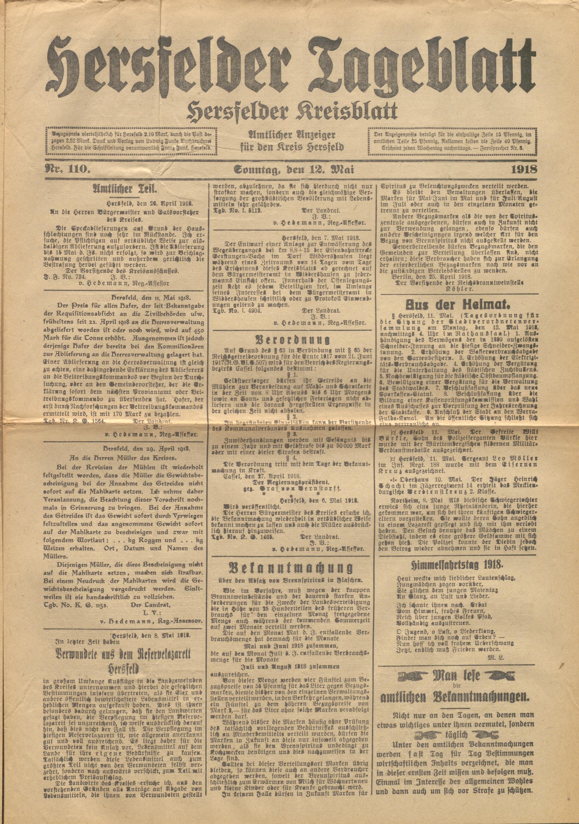 Hersfelder Tageblatt. 1913-1933