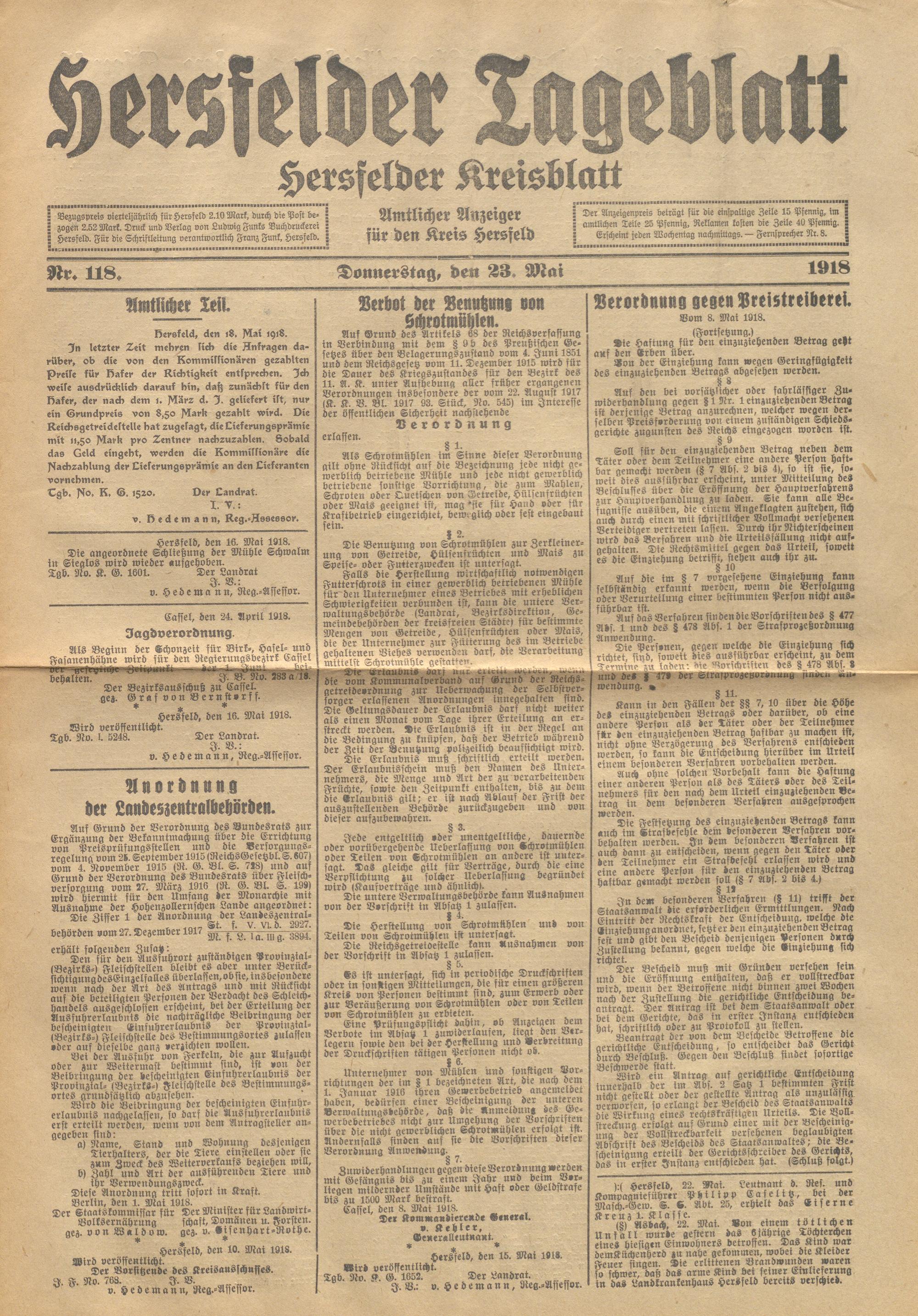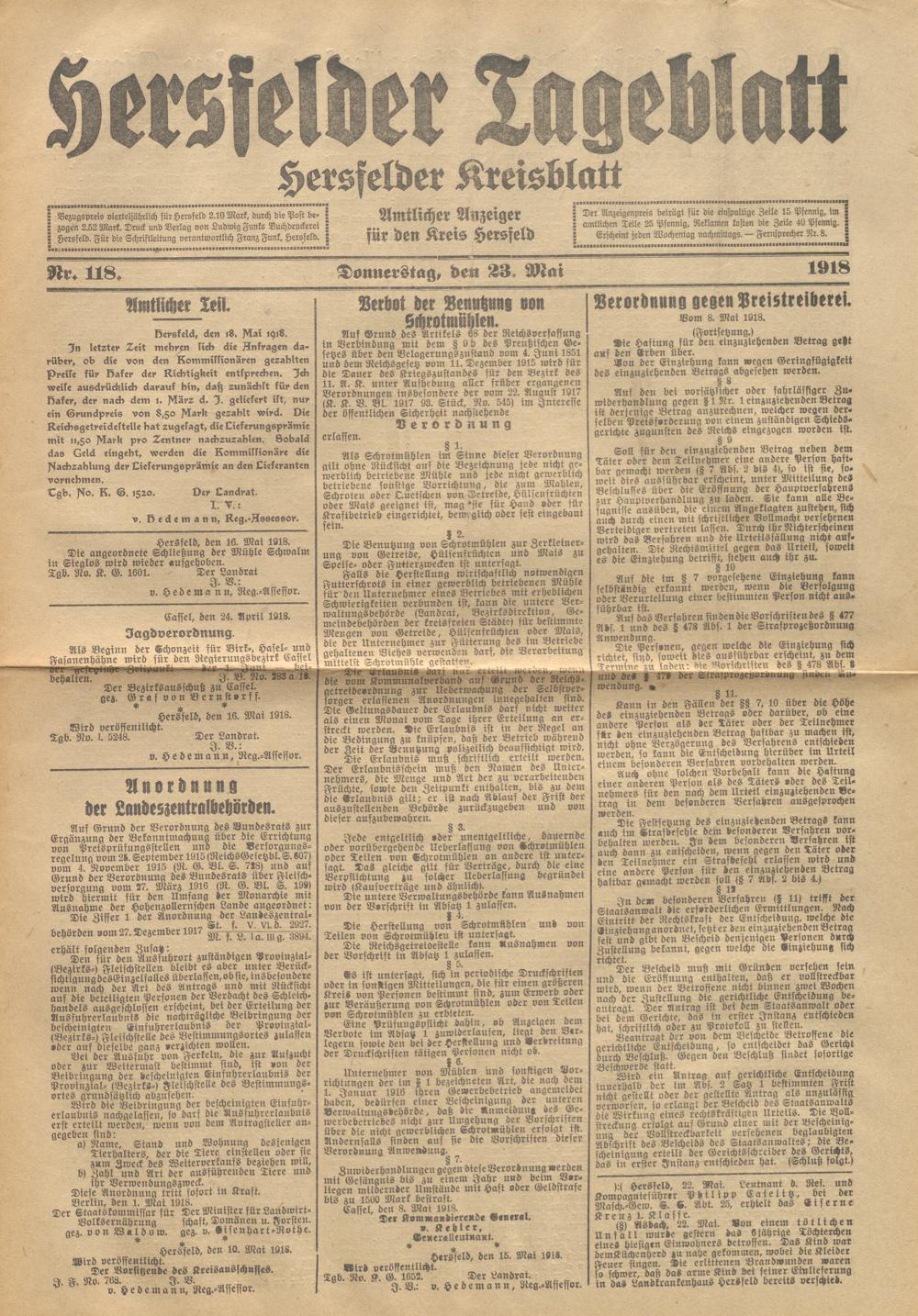 Hersfelder Tageblatt. 1913-1933