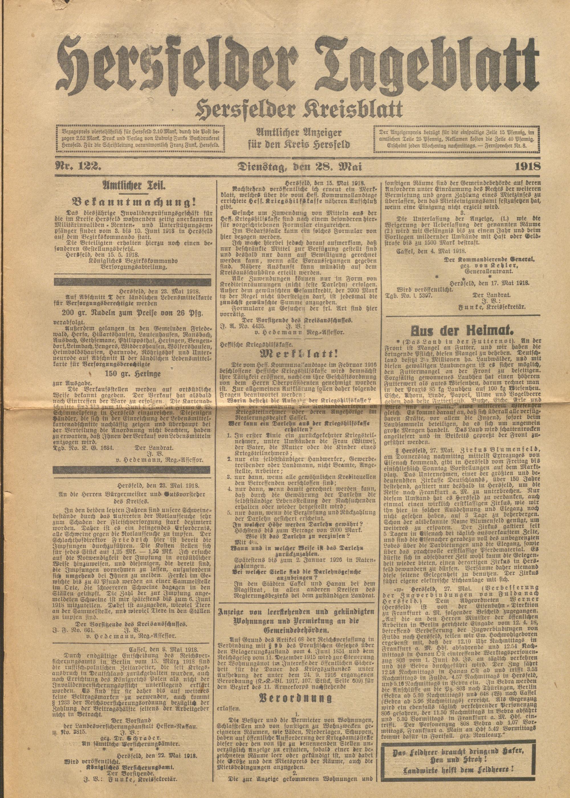 Hersfelder Tageblatt. 1913-1933
