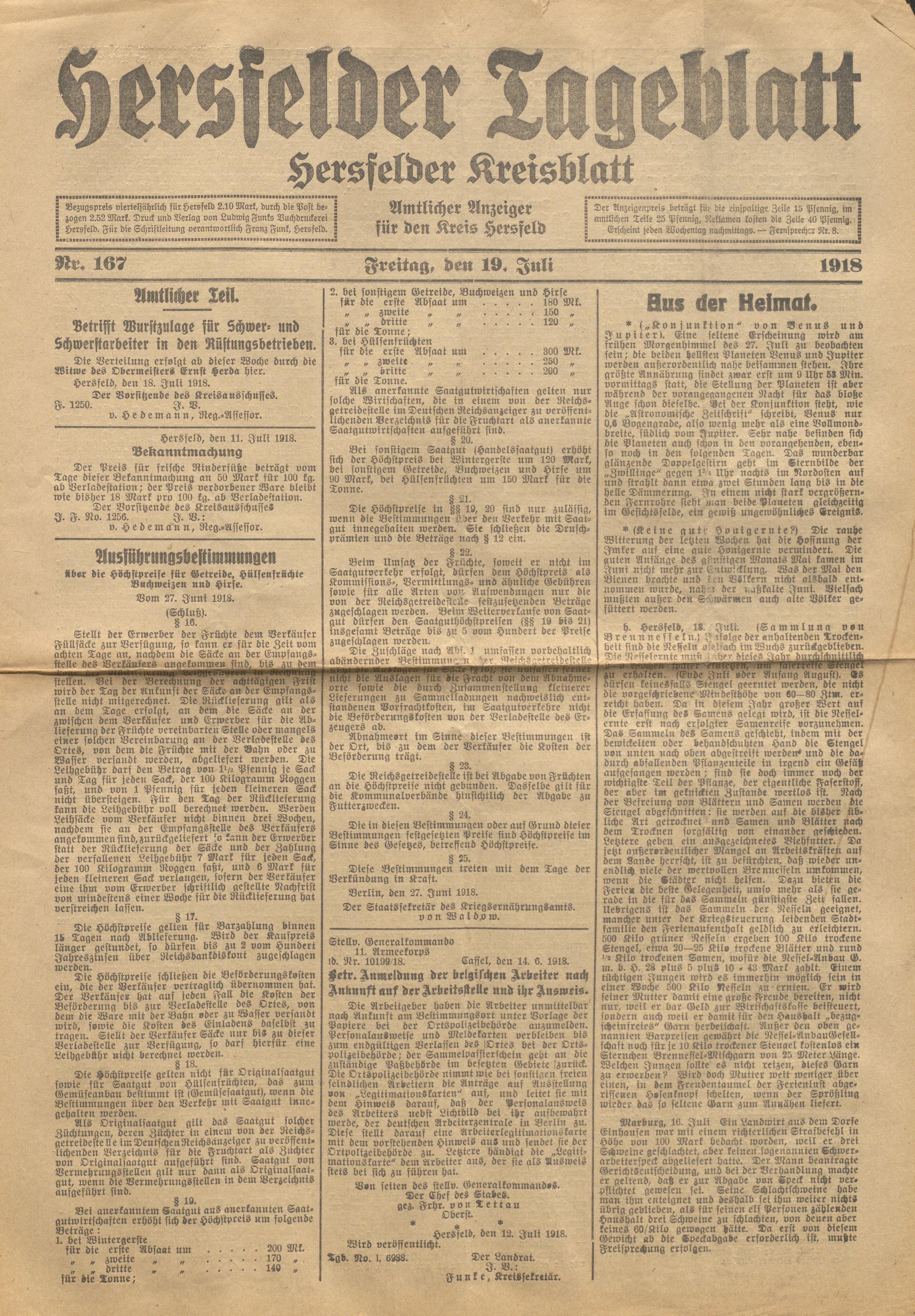 Hersfelder Tageblatt. 1913-1933