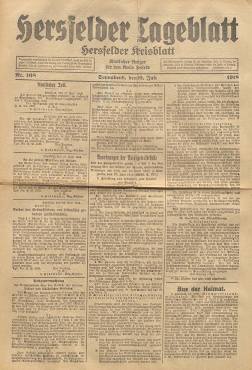 Hersfelder Tageblatt. 1913-1933